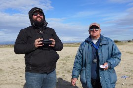 En esta categoría de pruebas somos los mismos pilotos los que cronometramos los vuelos, de forma que o vuelas o cronometras y en esta ocasión, que éramos numero impar los pilotos, nos vino estupendamente la presencia del Sr Ricardo, de baja actualmente en los vuelos pero sin dejar el contacto con las reuniones