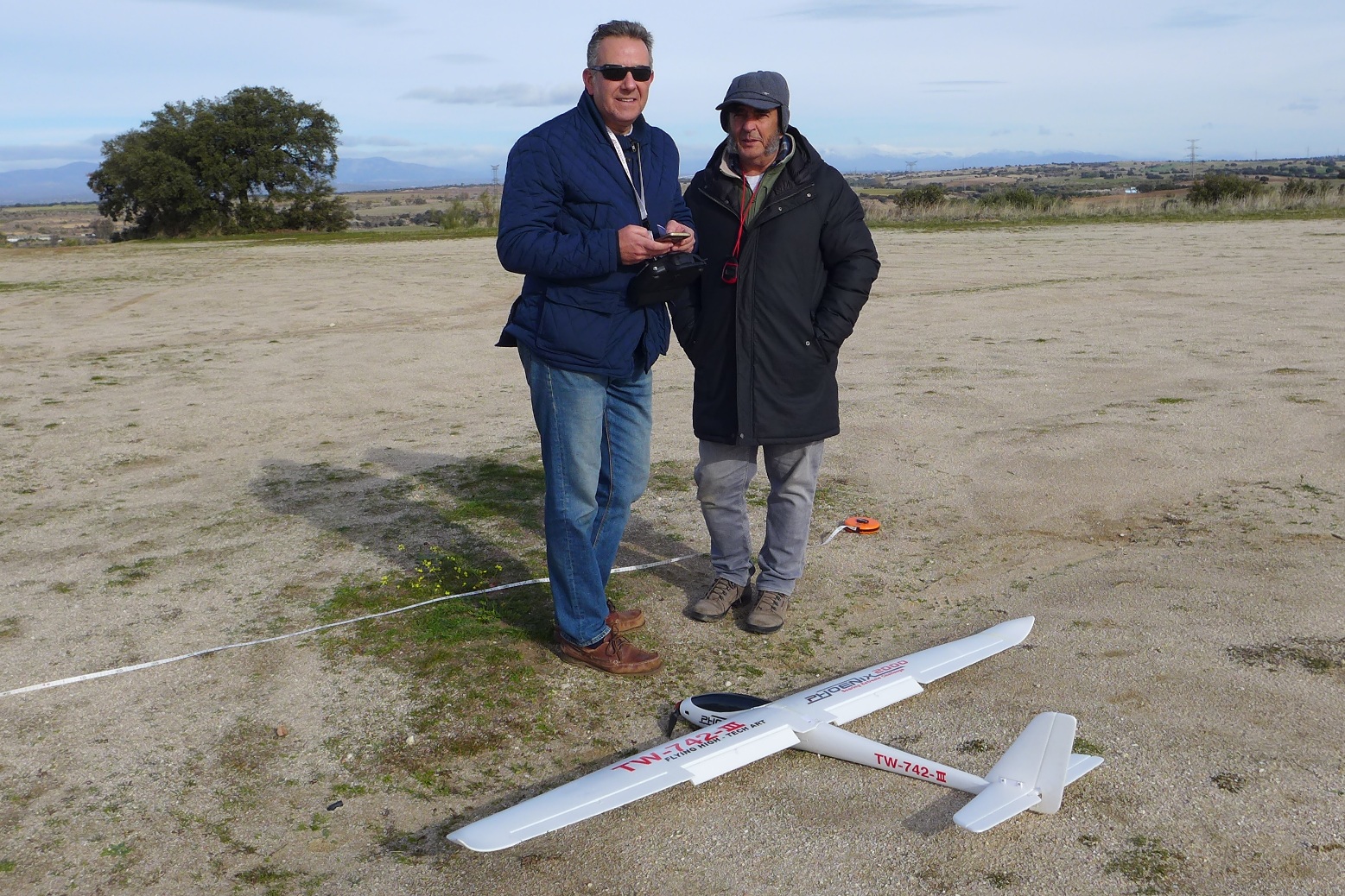 Sobre las once ya estábamos preparados (no es mala hora para comenzar, jejeje), los gassensor listos y con las instrucciones comentadas y sólo faltaba poner en vuelo el primer modelo. Por sorteo le tocaría a Sixte, el anfitrión, y los seguiríamos, Pereira, Jose Enrique, Luis (yo) y Coronilla. Por cierto, nos acompañaba D. Andrés F. Sánchez Maján Presidente de la Federación Extremeña, que como en otros eventos se acerca a saludar a propios y extraños y estar con el Deporte Aéreo en una de sus disciplinas.