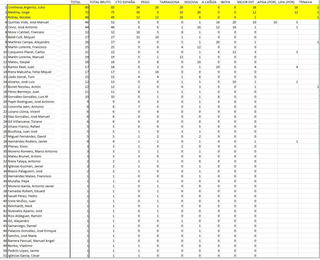 | 6 | IGLESIAS GUZMAN, F JAVIER | 82 |