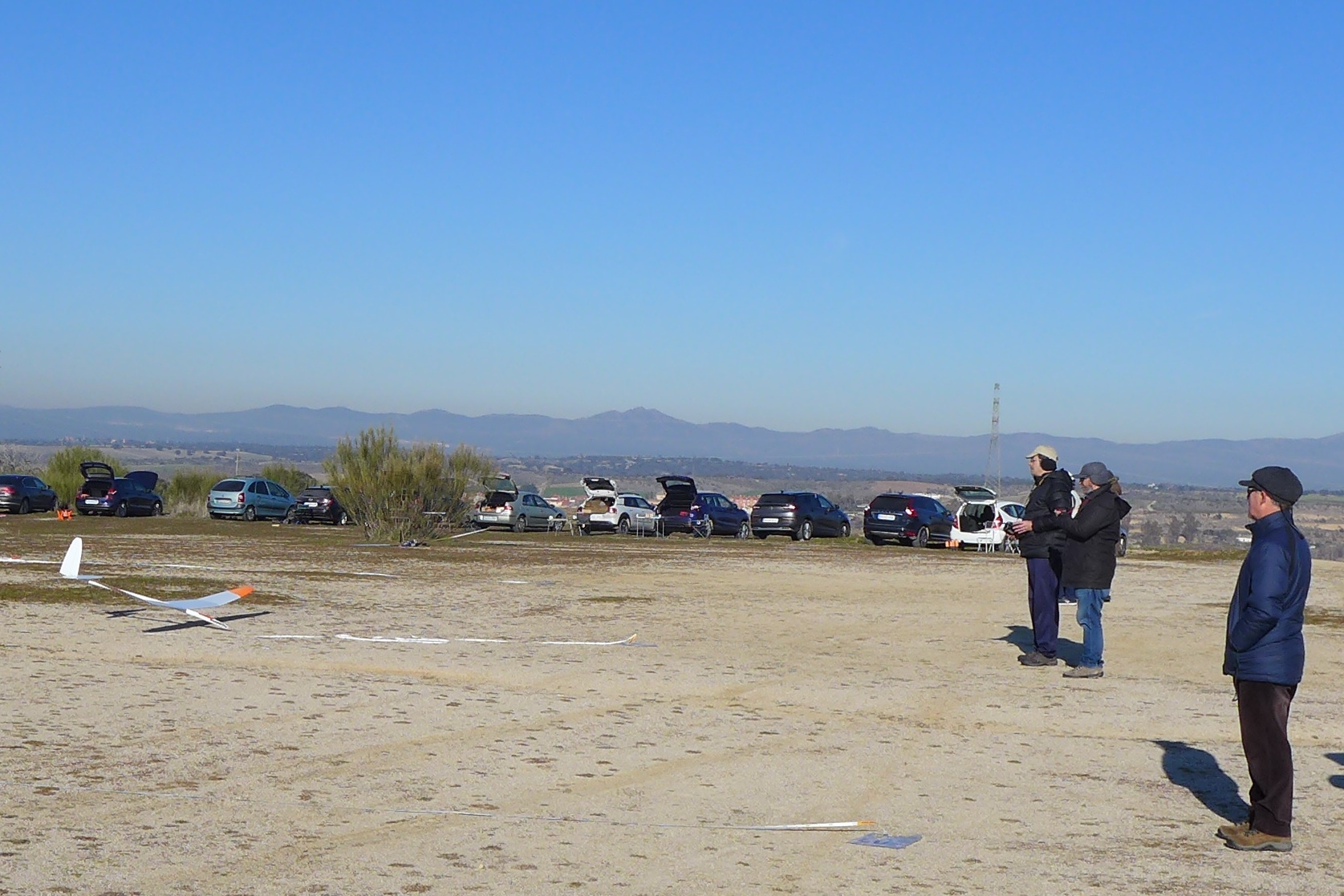 Algo tendrá el agua cuando la bendicen, pues lo mismo habrá que decir de esto de los concursos de veleros de radio control para que hoy trece concursantes desafiaran el frío y el sueño para estar volando aviones en un descampado de los límites territoriales de la Comunidad de Madrid.