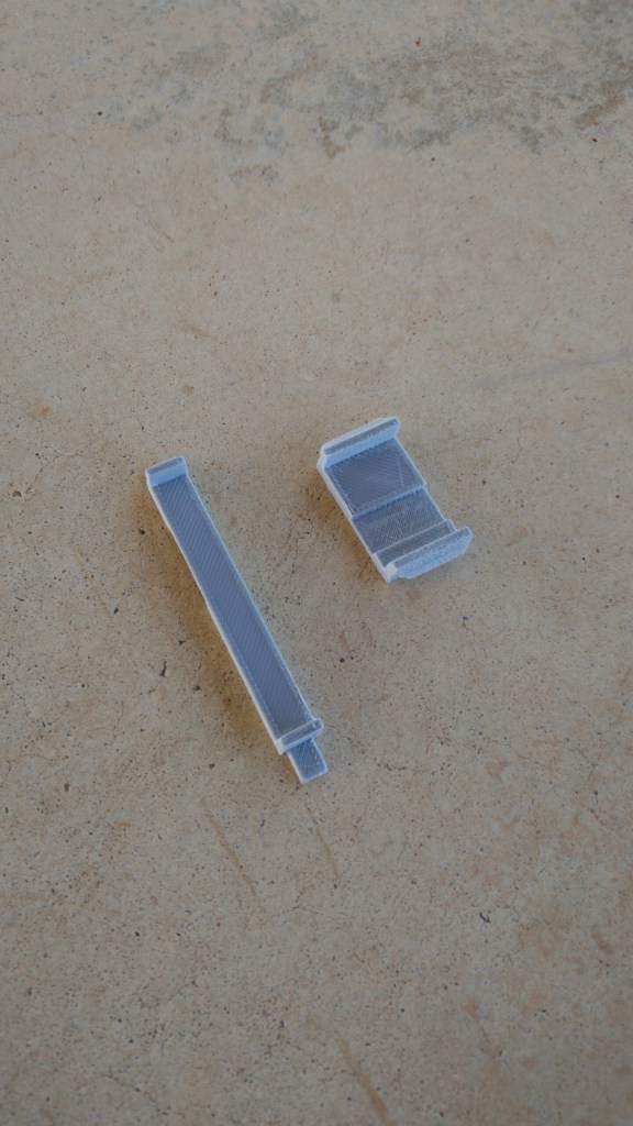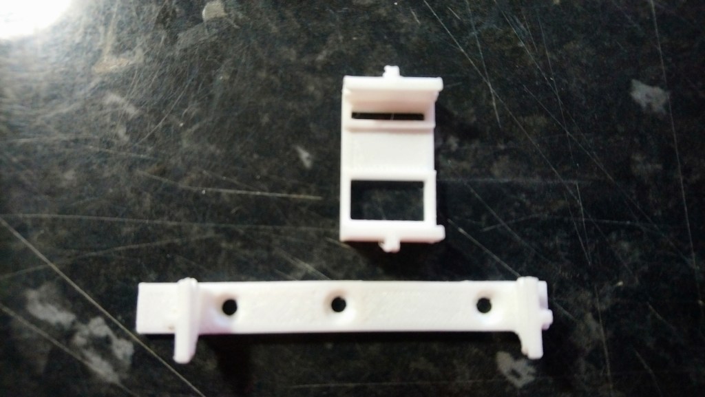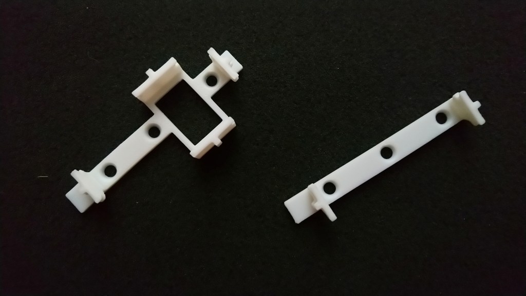 A mi me viene mejor la pieza para sujeción longitudinal solamente, ya que por la curvatura de la cabina y la varilla de sujeción de la misma al fuse es la que me permite la mínima ocupación de volumen. Por el material en que se realizan se pueden fijar al modelo (o su cabina) con pegamento rápido (cianocrilato) no aconsejándose el uso de epoxi a no ser que lo que se quiera es sujetar las dos pestañas de los extremos largos únicamente bajo un pequeño ‘pegote’ de pegamento (esto permitiría desmontar el soporte si no se va a usar).