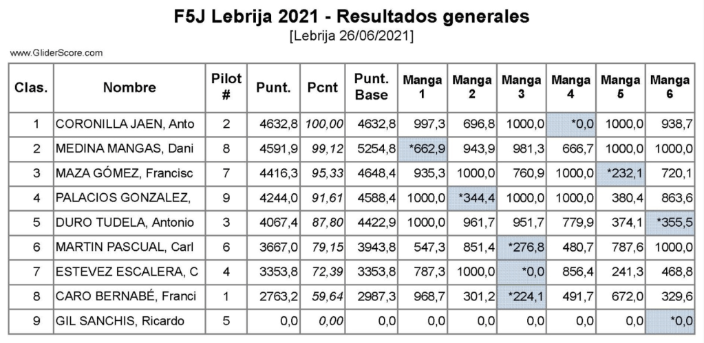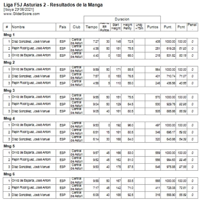 El ganador, apostó por subir bastante, y aunque en algunos de los vuelos le sobró por encontrar pronto la deseada térmica, fue determinante para alcanzar el tiempo máximo en todos los vuelos, salvo en el primero que fue para todos de tanteo.