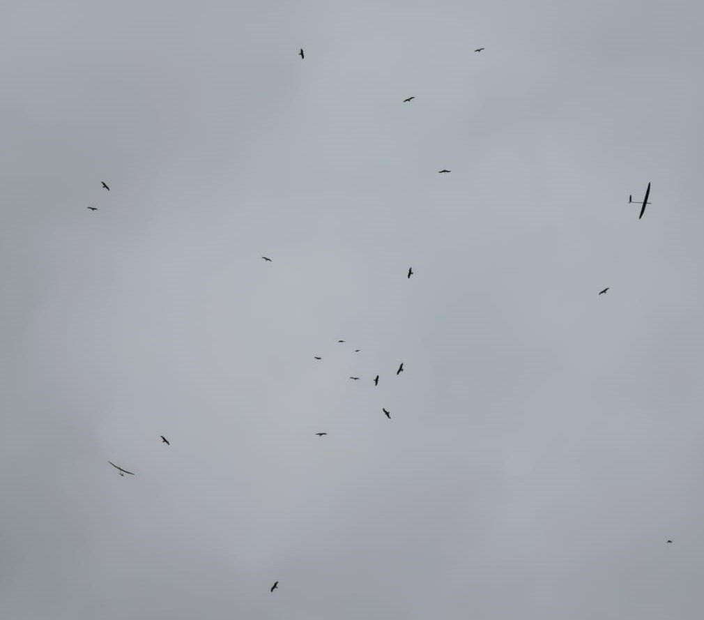 En cuanto el sol calentó, los cortes de motor bajaron a 52m (Felip Riera y 1000 puntos ) .los mas atrevidos ya cortaron bajo la primera manga y algunos sus primeros sustos , llego un momento que las águilas nos marcaban donde arrancaban las térmicas pero había que ser valiente y atrevido porque estaban lejos y ellas esperaban la térmica , alguna vez se dio el caso de “ ir pa na ” y vaya susto el tiempo pasaba , las águilas dando vueltas y la térmica no arrancaba….aquí saco redito Nico, supo esperar el momento, Fe ¡¡ también la confianza en el y su Volo.