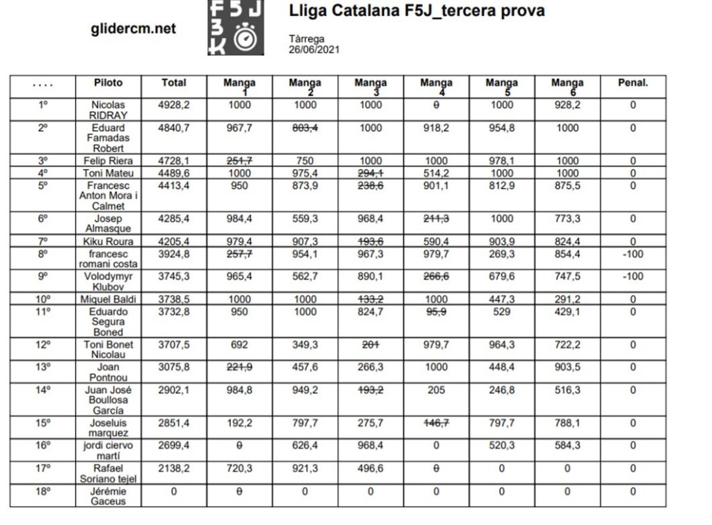Hola a todos , Otra gran mañana de F5J con la agradable visita de los cracs de Baleares Felip , los Tonis , Mateu y Bonet y desde Valencia Volodymyr un gran piloto Ucraniano que ya es la segunda prueba que se desplaza hasta aquí, y el recién llegado Jérémie Gaceus.