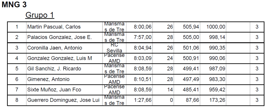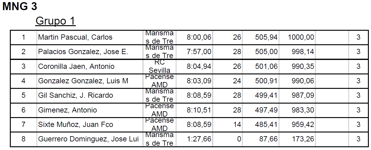 Muy igualados casi todos los vuelos, con algún que otro pinchazo sonoro (vg.: Luis en el quinto vuelo), pero muy agradable para la competición esa igualdad. Como ejemplo: