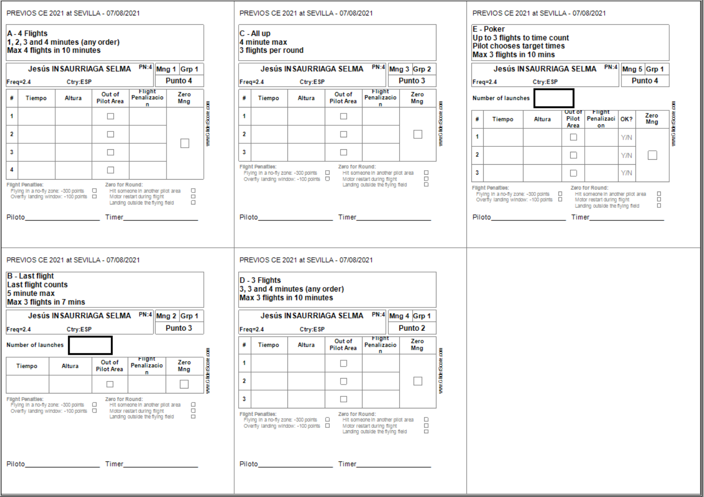 Y algunas cosillas más que hay que leerse en el reglamento, por ejemplo que en caso de colisión entre dos modelos no hay re-fly ni penalización para ninguno de ellos (sólo podrá aplicarse la descalificación caso de anti-deportividad por parte de algún ‘deportista’, y dependerá del criterio del DC y/o del Jurado de Competición).