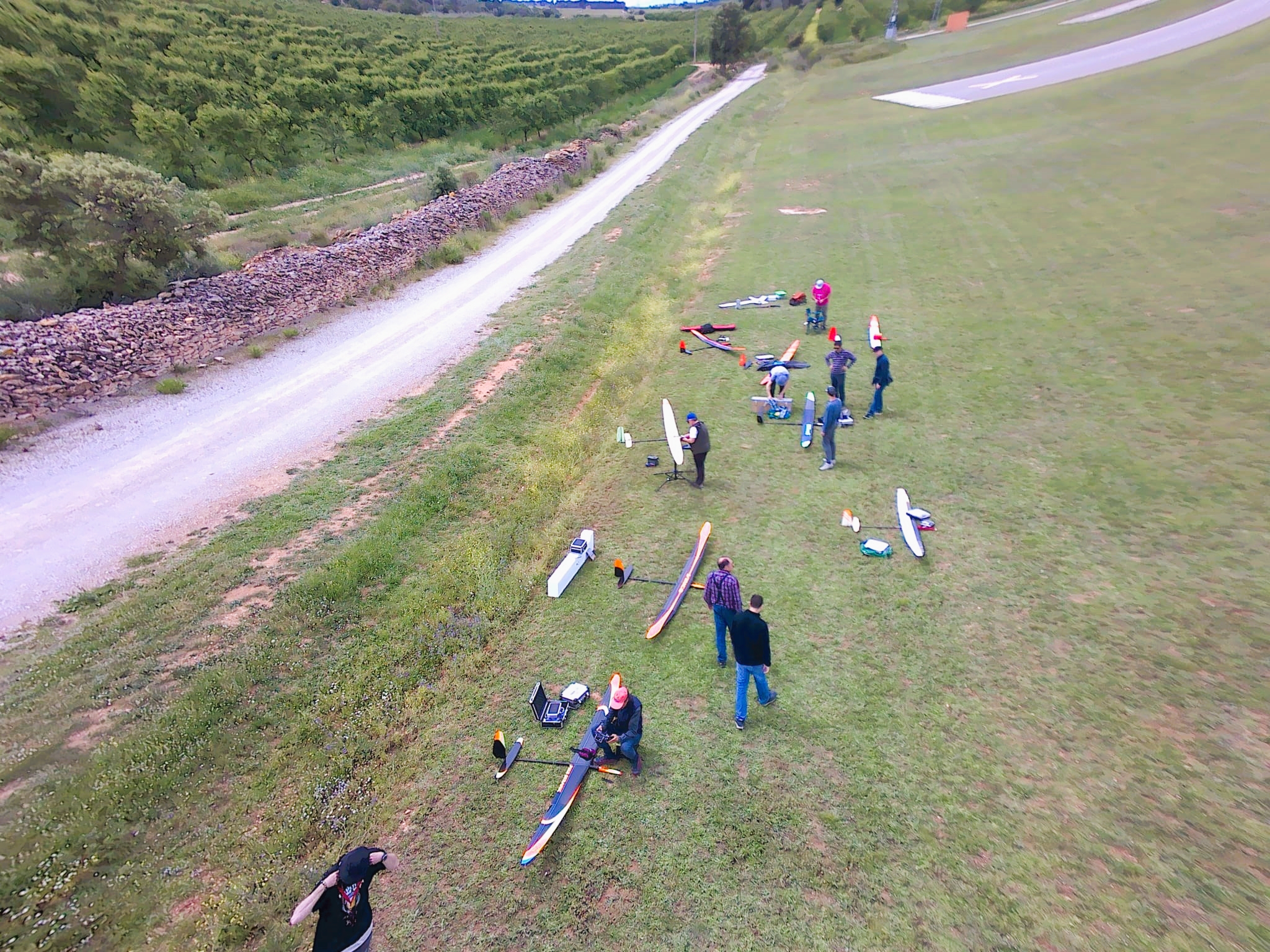 Un sólo incidente, bueno accidente en los vuelos y fué la rotura de la cola del modelo de Jose Luis Guerrero al engancharse con unos matojos en la toma
