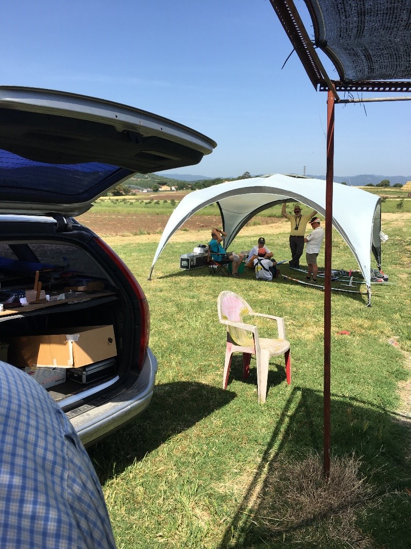 Una vez terminados los vuelos se procedería a la comida, con tres grupos por manga la duración fue de cuatro horas y media largas, controlas por la ‘secretaria’ gracias a las grabaciones que en su día hizo Joan Fontcuberta para el Campeonato de España celebrado en Campos (Mallorca). Pilotos y acompañantes disfrutamos de las exquisitas viandas con las que nos agasajó el Club de Aeromodelismo Plus Ultra, que si lo hace bien, la siguiente lo mejora…