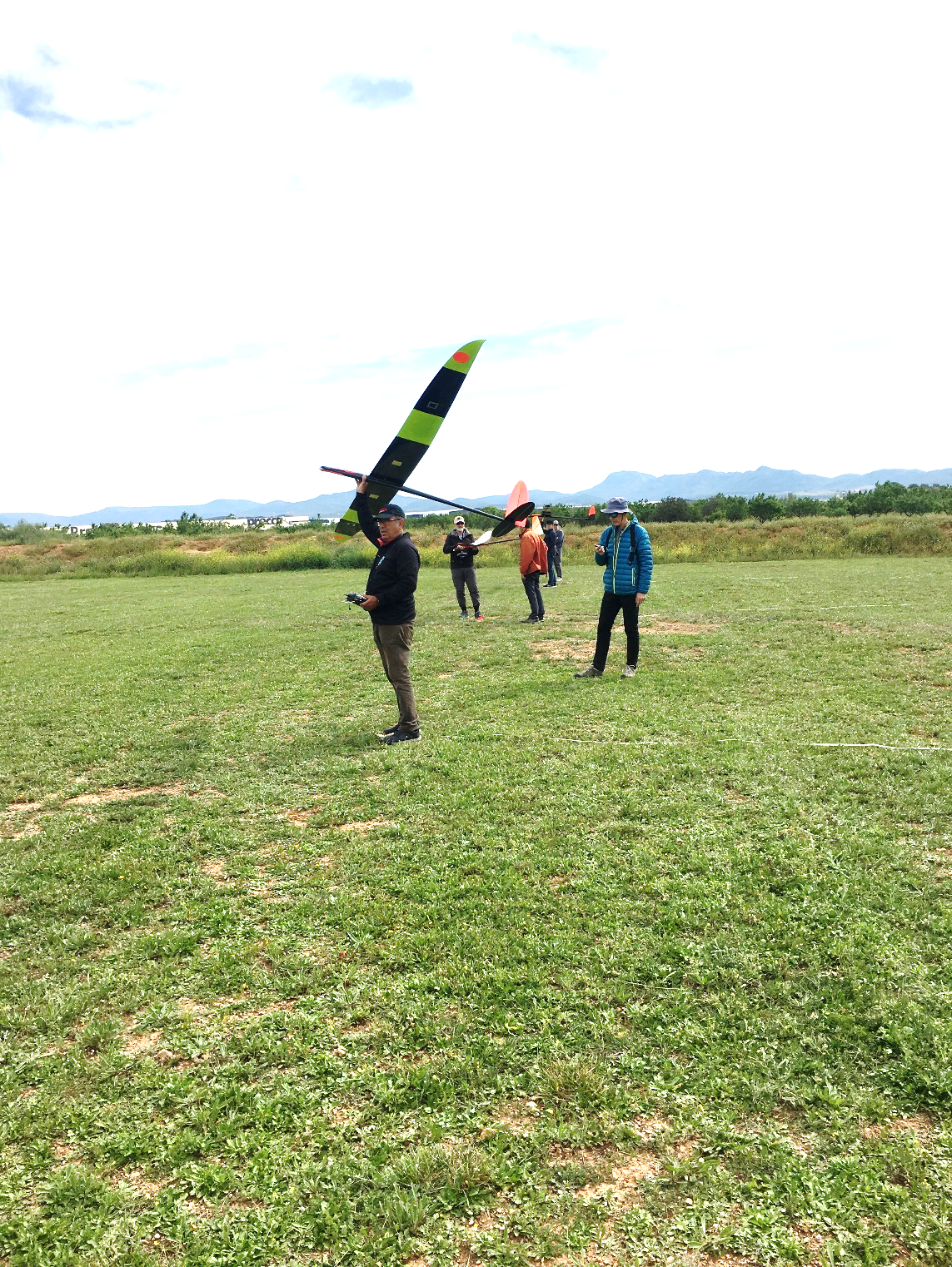 El dia era perfecto, cielo con algunas nubes temperatura suave sobre los 20⁰C y viento de 6km/h del sur, las térmicas no tardaron en emerger el principio pequeñas a partir de las 12 bastante fuertes, cortando a 120m te da tiempo de una o dos rectificaciones de la decisión inicial de donde cree uno que están pero si fallas en 3 minutos estas en el suelo, los vuelos de 8 minutos y el tiempo entre mangas de 3 minutos crea un concurso muy dinámico y divertido.