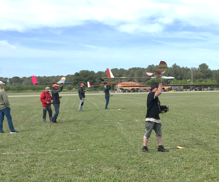 Otro buen día para estos veleros livianos, verano anticipado, viento de 14 km/h y una temperatura de 27⁰C, aquí la primera vez en el Club de Calella con veleros térmicos, una inscripción excepcional que por diversas causas acabamos con 14 concursantes, aunque luego en el campo 2 indispuestos, malditos catarros.
