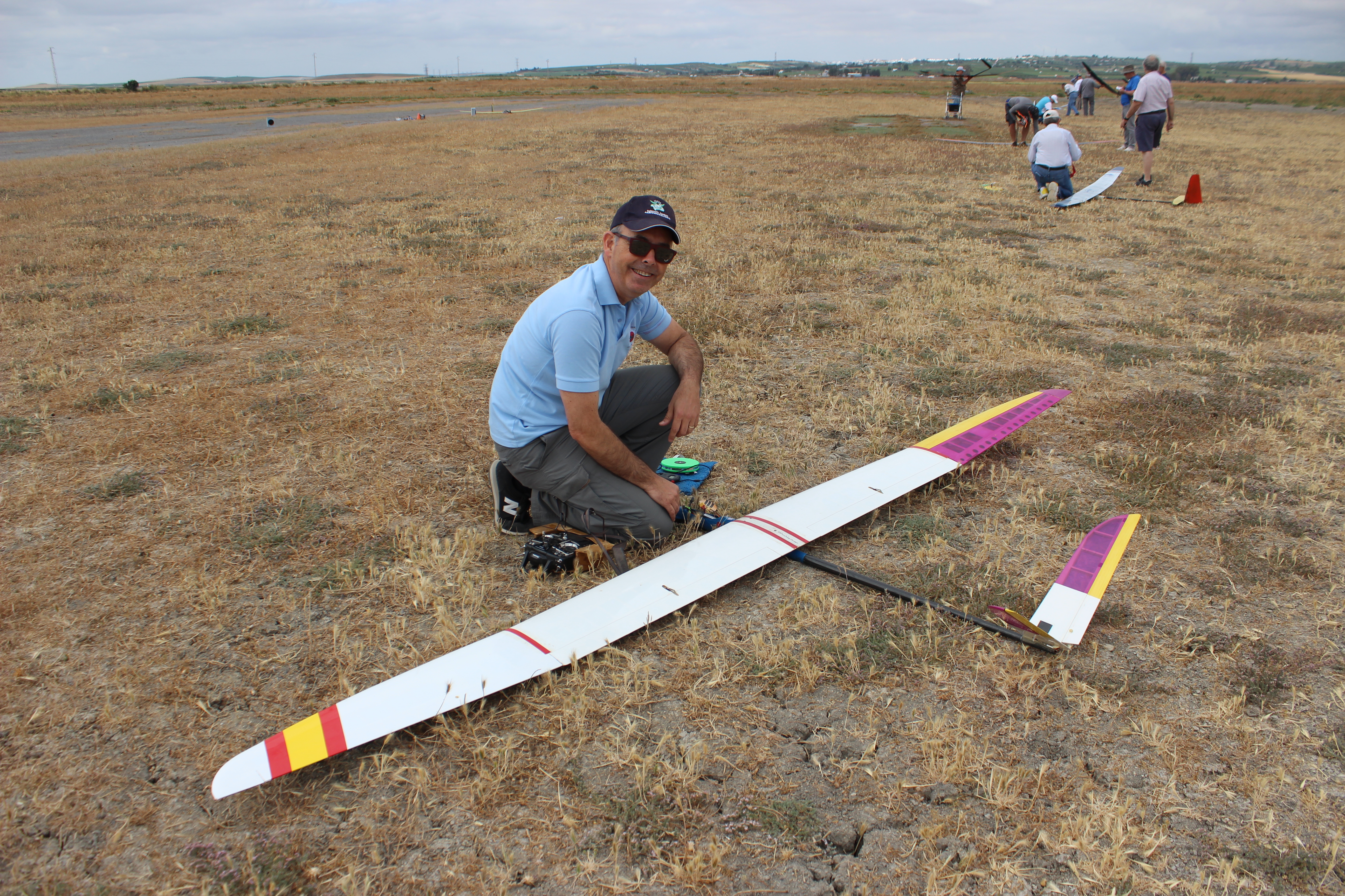 El pasado domingo 8 de mayo, en las instalaciones del Club Aeromodelismo Plus Ultra en Aljaraque (Huelva), Gonzalo Rodriguez con un grupo de socios del Club organizaban el Campeonato de Andalucía y Open de F5J – FN 30g con un nutrido grupo de participantes andaluces y extremeños. Nos inscribimos trece pero al final sólo nos presentamos doce, problemas de salud impidieron el desplazamiento de uno.
