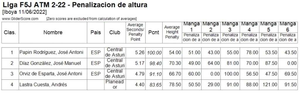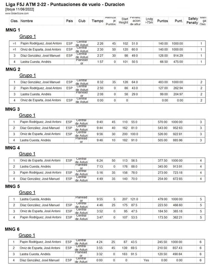 Una curiosidad no comentada antes es la del tiempo total de vuelo en los concursos y su relación con la clasificación. Podemos ver el tiempo acumulado de vuelo de todos los participantes y como ya es de ley, Jose Enrique segundo y ya está… del resto pocos coinciden con la clasificación del concurso. Al final no solo influye el tiempo que estás volando, sino también con quien lo haces en el grupo.