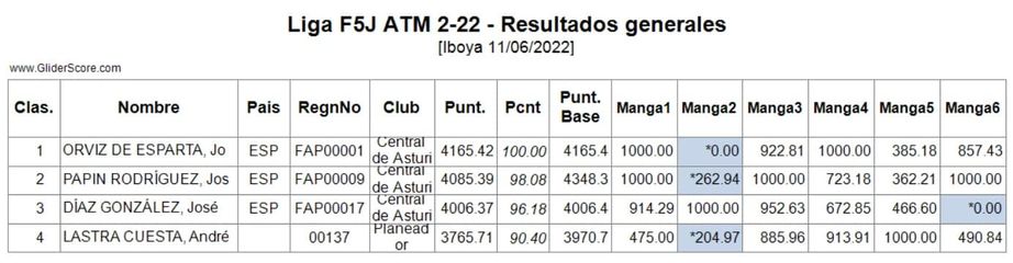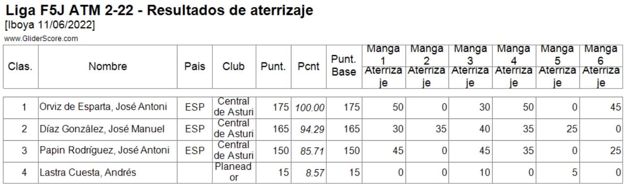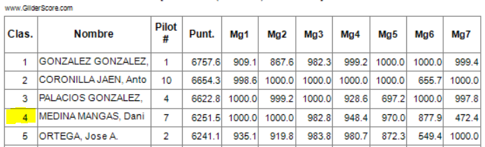 El más perjudicado sería Juan, que perdería dos posiciones seguido de Javier y Pedro que perderian una, mientras Rafa, Luis y Coronilla ganarian dos, destacando las subidas de Rafa y por supuesto las de Coronilla que desde un primer vuelo nada gratificante (11º) fué subiendo posiciones hasta alcanzar el cajón mas alto del podio.