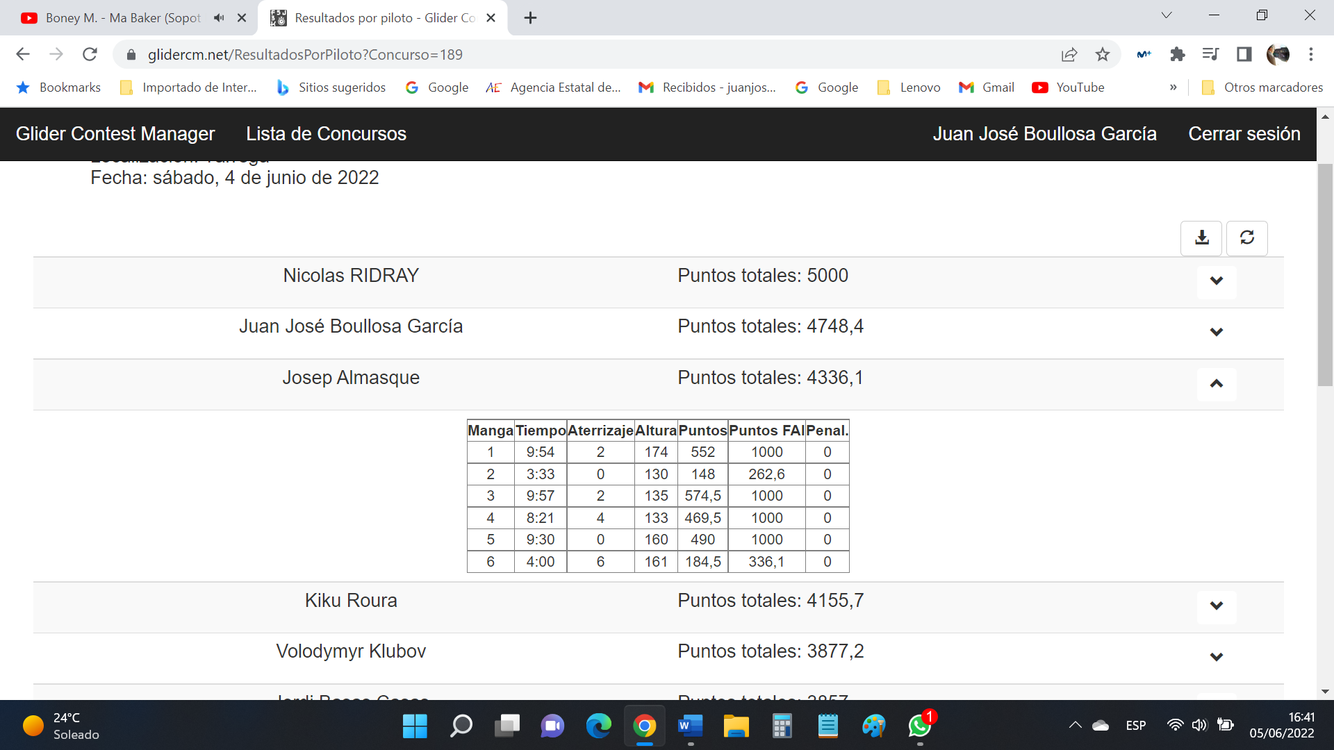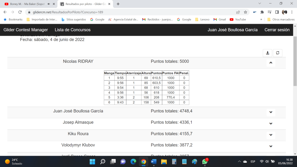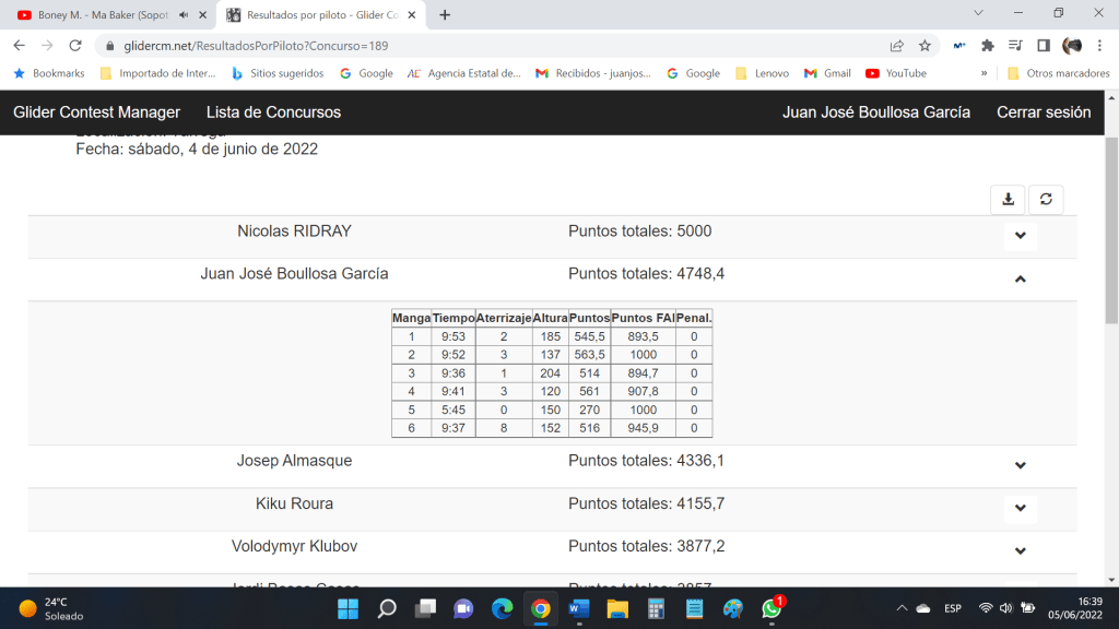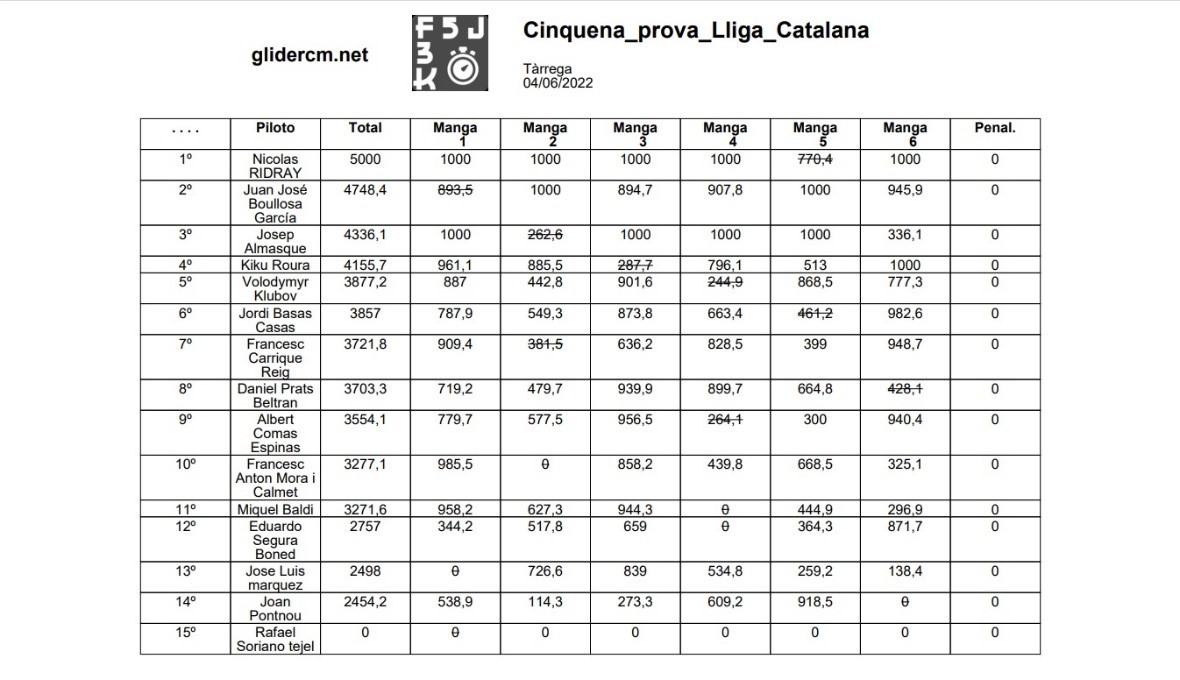 Eso de que los vuelos no eran fáciles puede verse en el meneo constante de la clasificación, que en este caso estaba disponible casi cuando acababan las mangas, en algún caso se publicó a falta de la puntuación de algún o algunos pilotos ya sea porque tenían vuelos continuos en mangas diferentes o por propio despiste del piloto que no entregaba la papeleta. Arsenio Jr. fué un máquina en la introducción de datos, por su reflejo de la realidad (ni un sólo error en los 91 vuelos), por la rapidez al cumplimentar los grupos y su publicación en el chat de la especialidad en WhatSapp (si alguien quiere incorporarse, sin problema, con decirlo es suficiente). Gracias Junior… te fichamos para próximos encuentros.