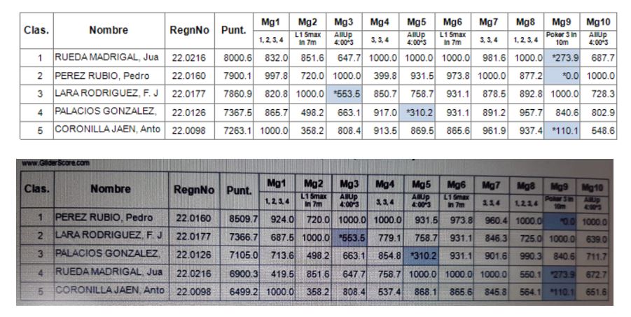 Pero si este era el principal ‘escollo’ a salvar en los preliminares del Campeonato no fué el más dificil de resolver. Por no se que motivo, si uso defectuoso o actualización fallida/incompleta, después de un primer repaso en la pista una vez introducidos los datos de los vuelos, se procedería a dar la Clasificación que como siempre se revisa una vez en casa y descansado del concurso, pero… esta vez el fiasco fué impresionante, ya vimos que algunas cosas no funcionaban correctamente pero creimos haberlas resuelto… craso error. Pero vamos con lo interesante, los vuelos y los artistas que los realizaban.