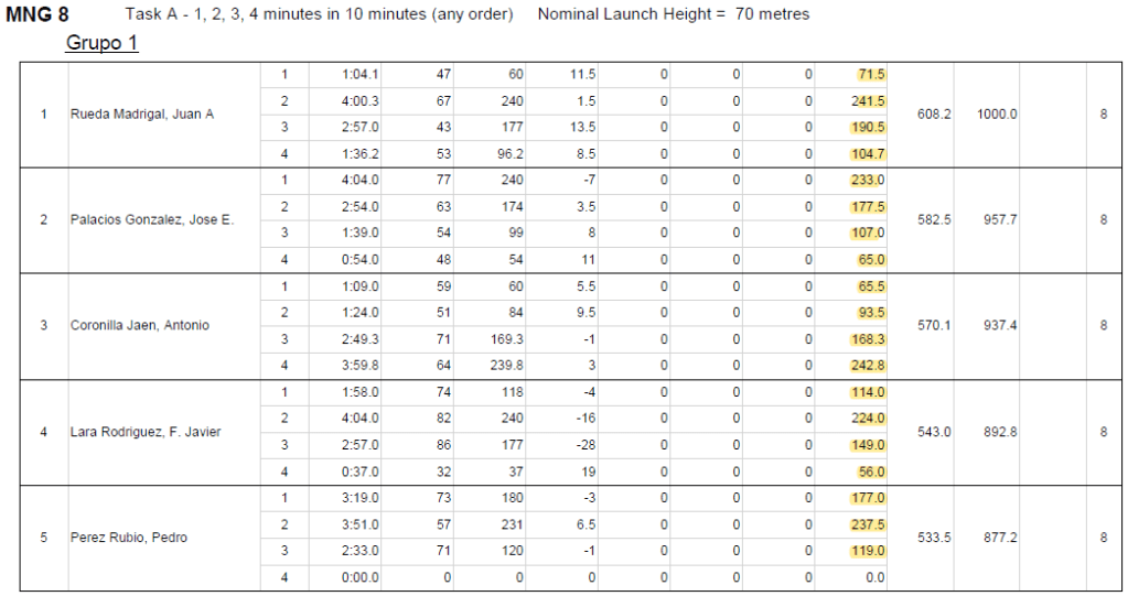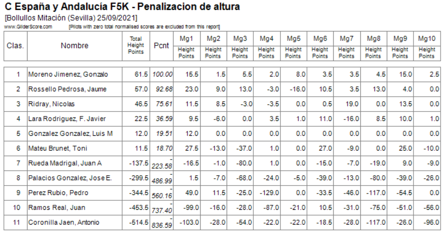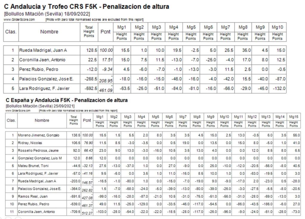 Como ya se dijo en la primera parte la altura de partida se estipuló en 70m, igual que el año pasado en el Campeonato de España 2021, sin embargo hubo bastantes cambios en las penalizaciones por la altura de partida registrada por los altimetros; el cuadro siguiente refleja las de sólo los diez primeros vuelos del Campenato España 2021: