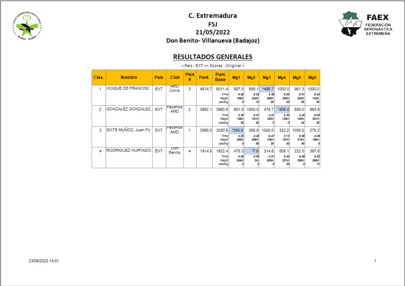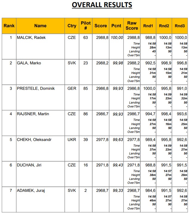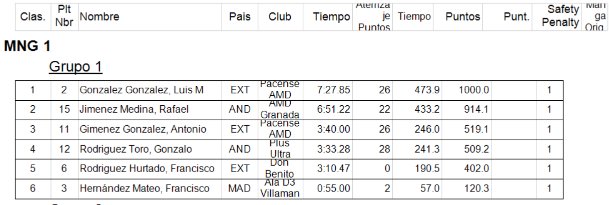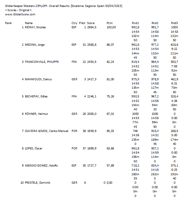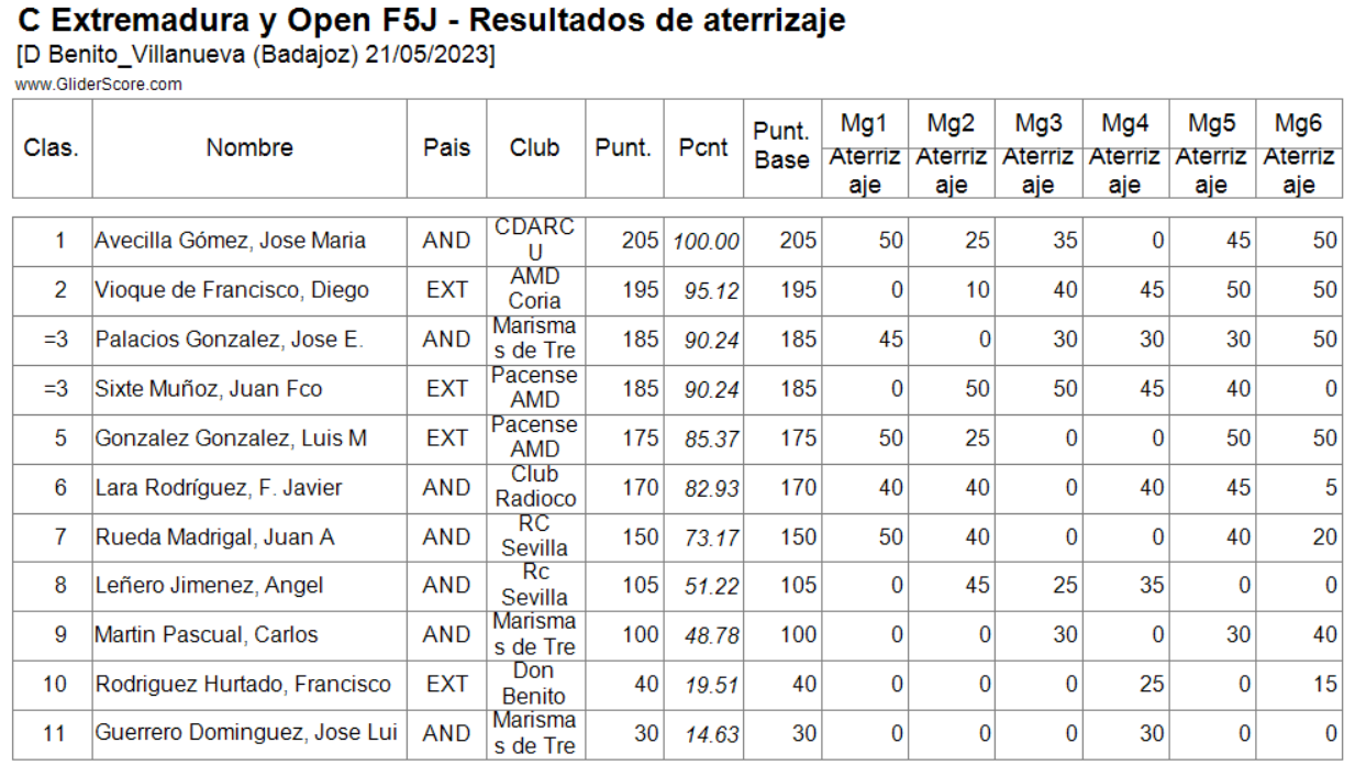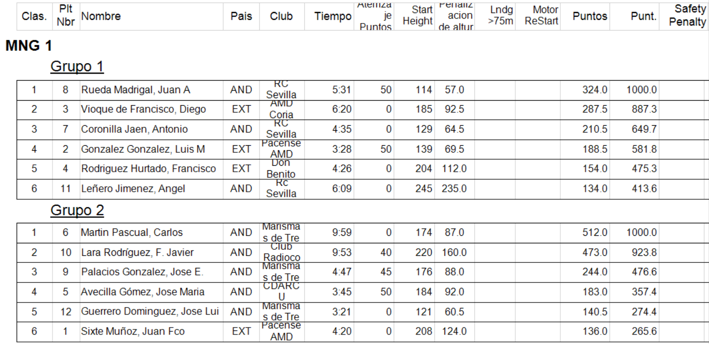 Los resultados de los vuelos clasificatorios y fly-off (no completos como puede deducirse)