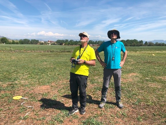 Una ligera brisa, con alguna racha mas desagradable para el vuelo, hicieron llevadero el tiempo que empleamos para los vuelos o para cronometar cuando nos tocaba, cosa ésta que aún no tenemos muy claro ni los participantes ni los ayudantes y muy estresante en esta modalidad habida cuenta que entre vuelo y vuelo sólo hay cuatro minutos, uno para terminar el vuelo en curso y tres de aviso/preparación para el siguiente.