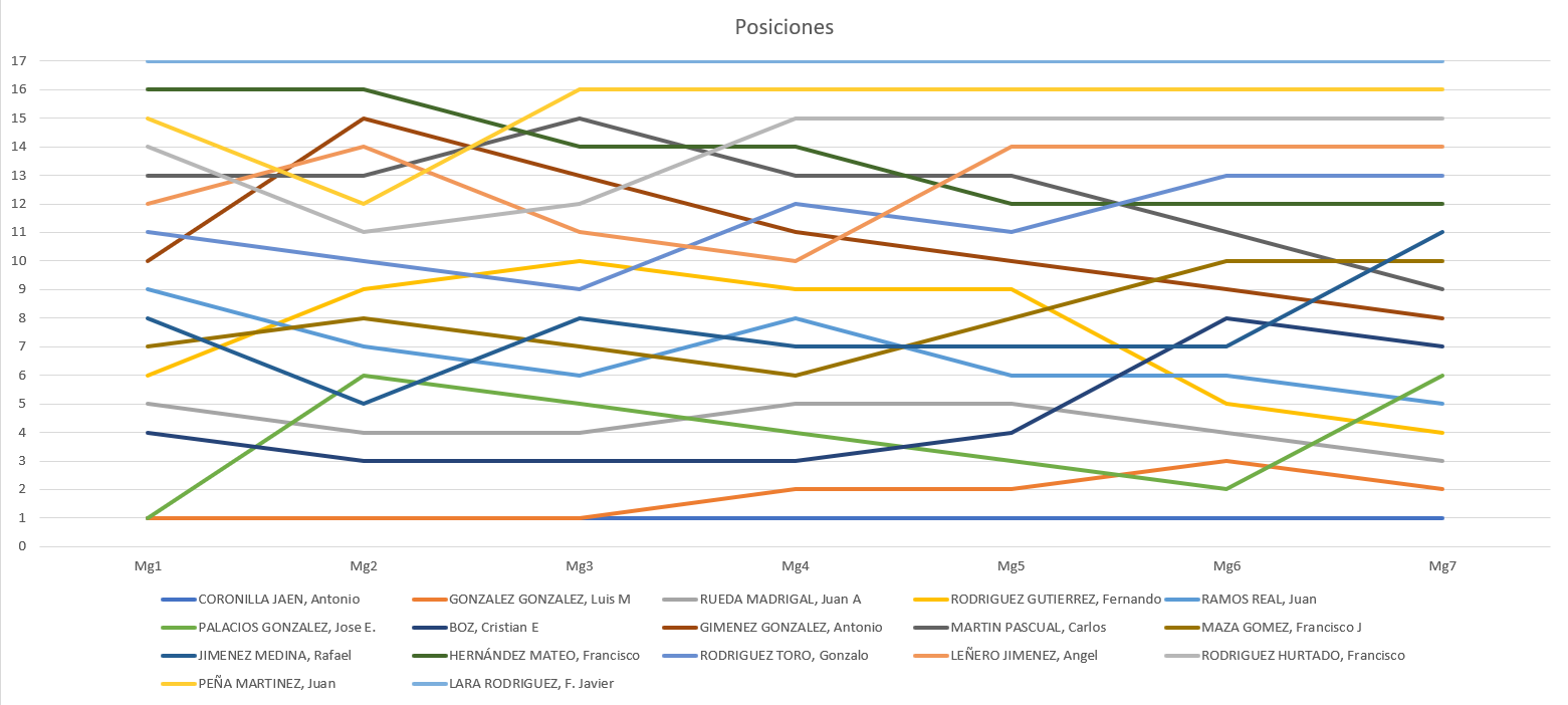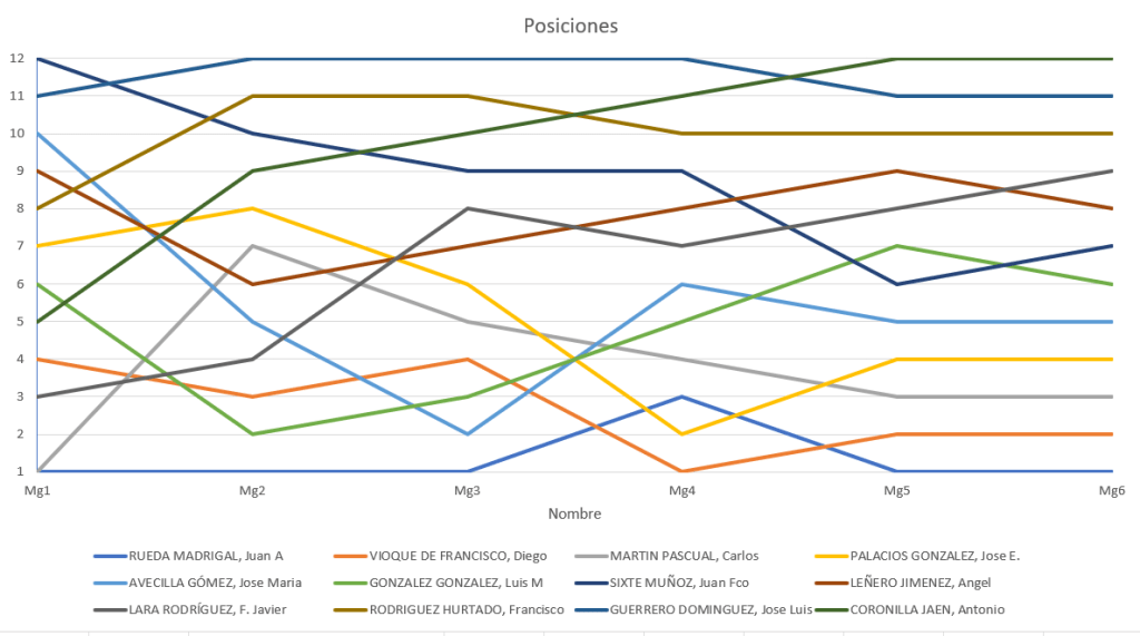 En la imagen siguiente podemos ver la evolución de las posiciones a lo largo del concurso: