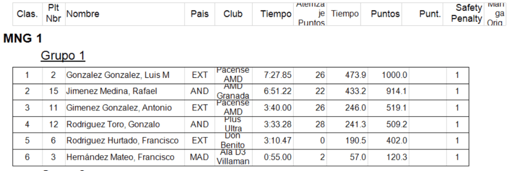 Y antes de lo importante las clasificaciones… La del Campeonato de Extremadura y su podio: