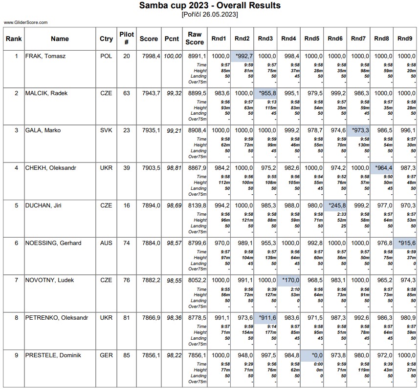 Una curiosidad más de esta prueba es que sólo en la última manga mas de la mitad (ocho) de los pilotos superaran los 500 puntos FAI.