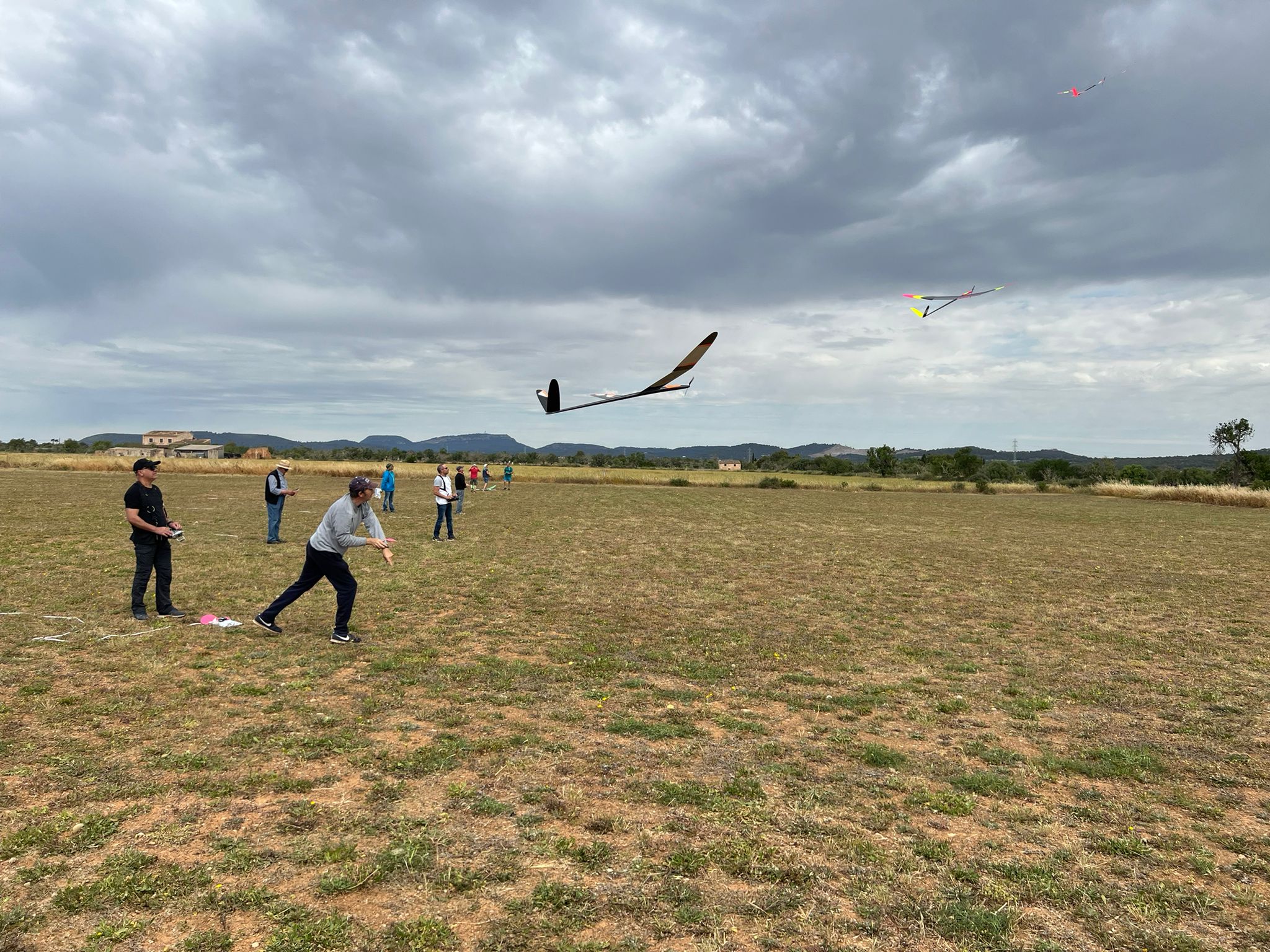 Como comentaba al principio, un estupendo día para la práctica de este bello deporte, sin lluvia, sin viento molesto y con temperatura agradable, también con sus térmicas… grandes térmicas, y sus correspondientes descendencias… igual de grande jejeje; podías estar a chiquicientos metros en un termicón y, de repente, te encontrabas que una mano desleal habia lastrado tu modelo con los mismo chiquicentos gramos de plomo y el resultado ya lo podeis imaginar, aunque hubo ‘manitas’ que pese a ello consiguieron salvar la manga en mas de una ocasión.