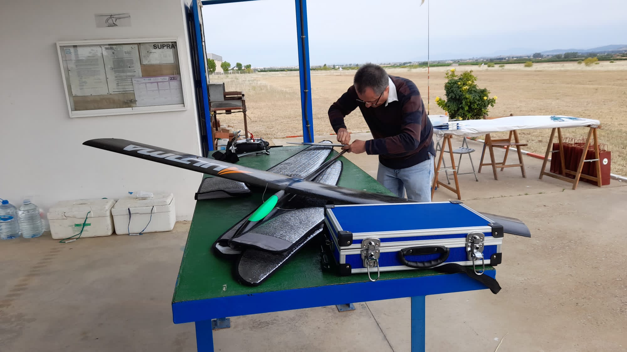 Se retrasó el comienzo para dar un poco de cuartelillo a uno de los pilotos que se fué a las instalaciones del Club Pacense, los hombres somos animales de costumbre jajajajaja. Una anécdota más de las que generamos en los concursos. De todas formas se puso en marcha la secretaria a las 11:15 para la realización de los seis vuelos programados en dos grupos por manga y se acabaron todas ellas sin incidentes dignos de mención, bueno si, Jose Luis realizaria los seis vuelos y Coronilla no podría realizar los trés últimos.