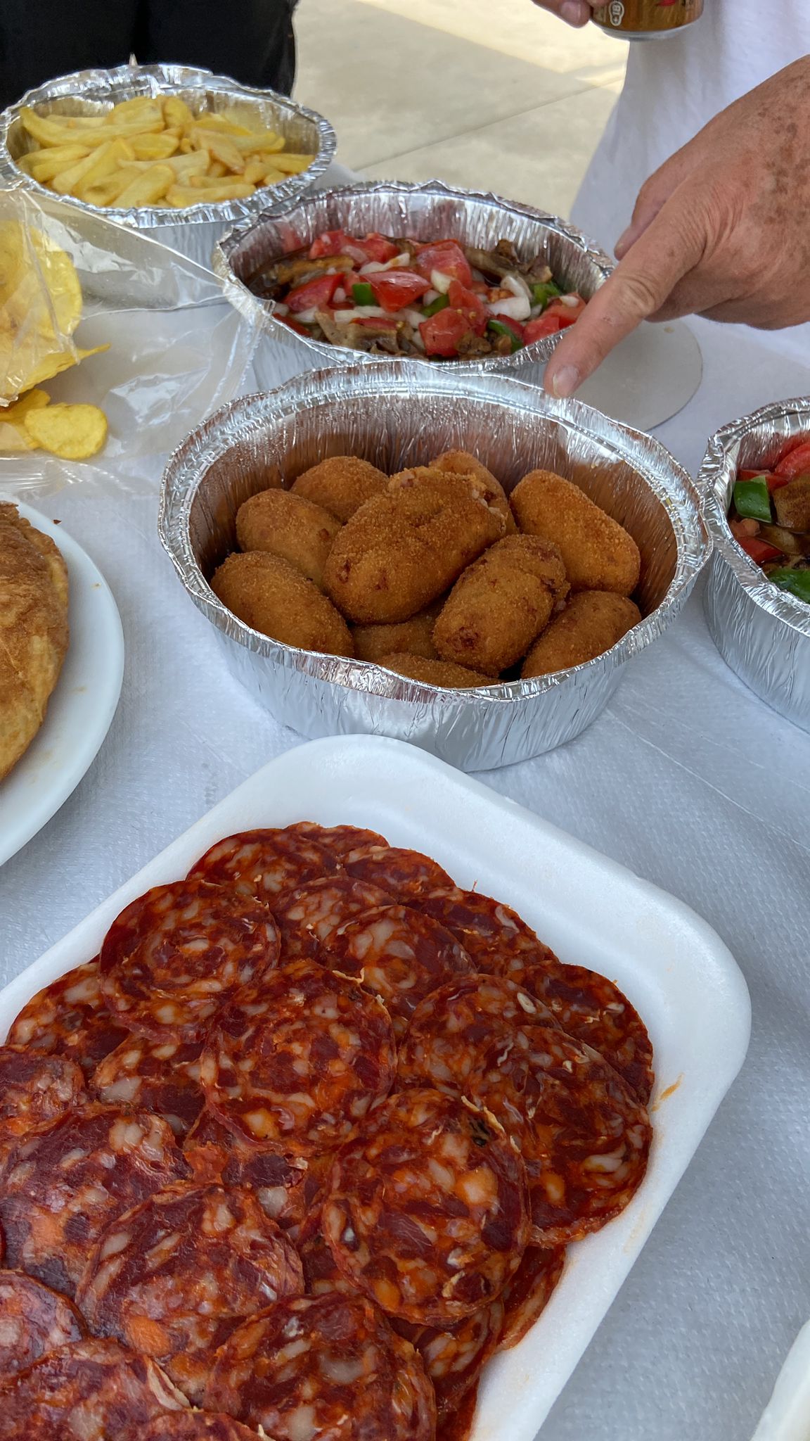 Añadida una foto a las de las «mesas para la recuperación» y como no podía ser menos con las artistas de la mesa… ‘las croquetas’, bueno… maxicroquetas jejejeje, y los menudos no tenian nada que envidiarle y eran sin colesterol, o eso espero ;).