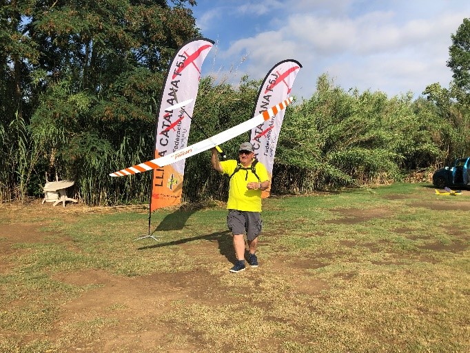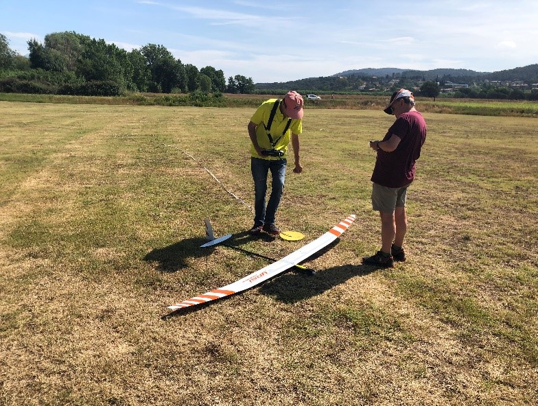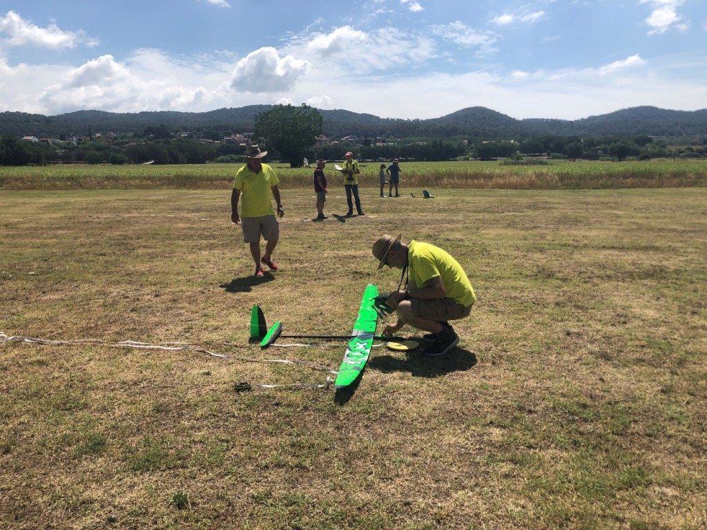 Dia inesperado este 1 de Julio vista la ola de calor anterior esperábamos un día tórrido, pero por suerte nos regalaron un día fresquito de 22°C que llego a 25°C con viento flojo Sur 8-21 km/h el cielo azul con alguna nube, habíamos quedado a las 8 am para huir del calor pero nos fue muy bien por que empezamos alas 9:30h el concurso, con 8 pilotos colocamos 4 bases y una vez trimado los modelos empezamos el concurso.