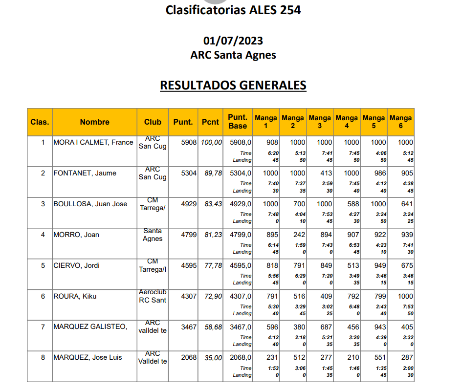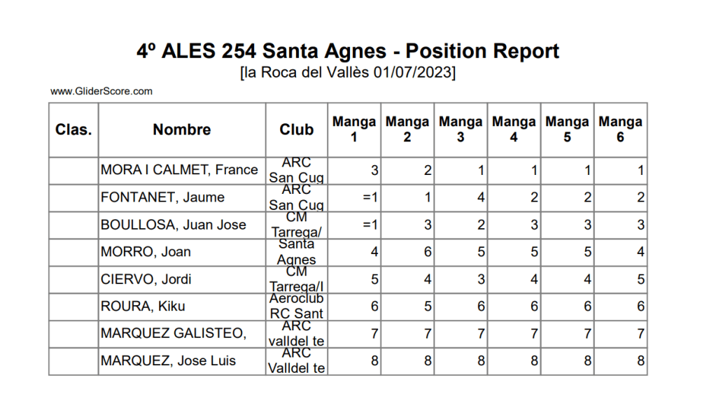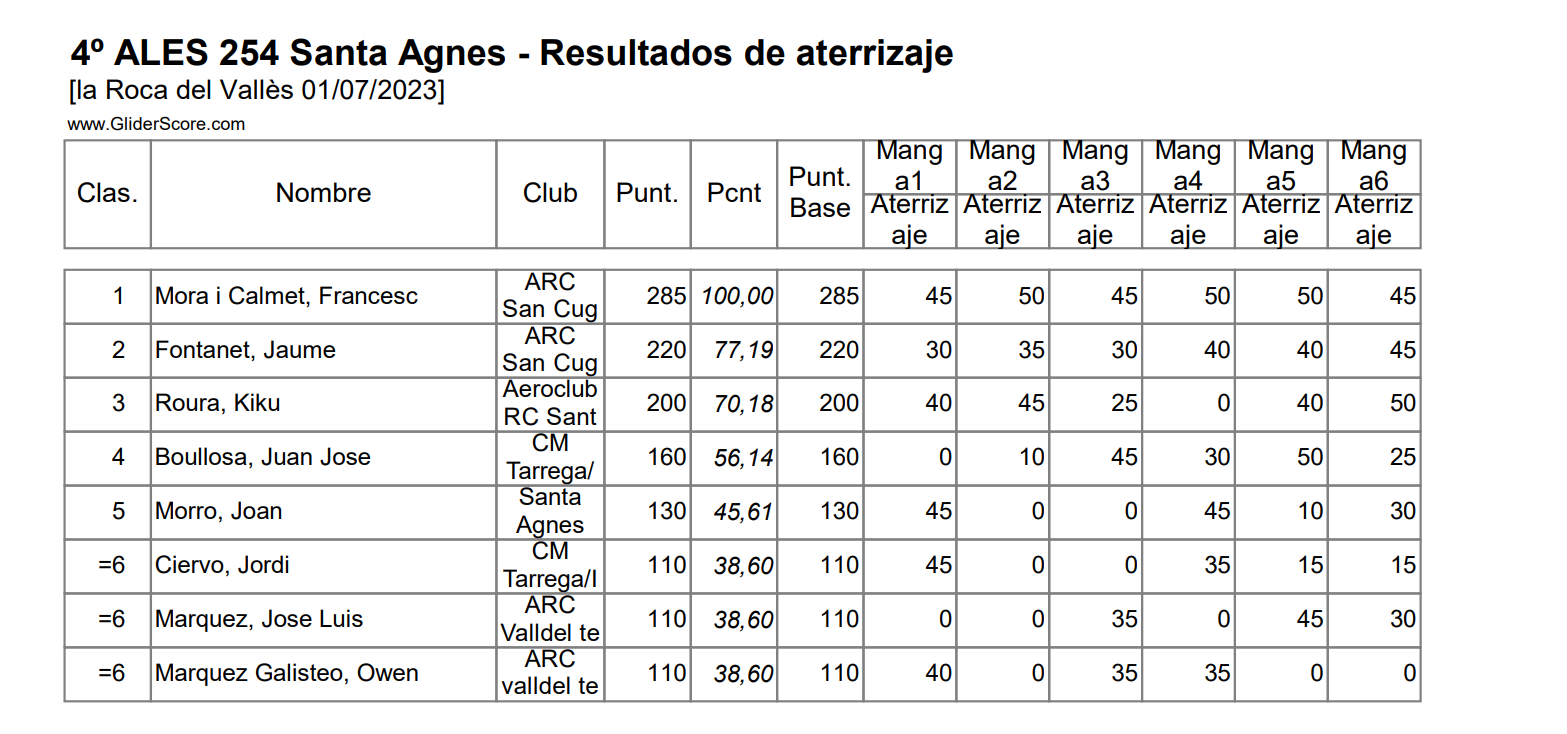 Las primeras mangas parecía que había térmicas para todos, pero al levantarse algo de viento pocos supieron encontrarlas, Francesc Mora y Jaume Fontanet supieron leer mejor las condiciones y los demás una de cal y otra de arena, si te salías de la zona buena en casi en 1 minuto estabas en tierra, era alarmante casi no llegabas al campo y aun estando alto.