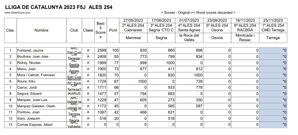 Como se ve Francesc Mora iba como una apisonadora, con calma y tranquilidad fue mejorando manga a manga, Jaume Fontanet lo mismo, destacar a Joan Morro que fue del 6º a 4º gran progresión salvo los dos primeros los demás caímos en descendencias bruscas y así fuimos varias mangas.