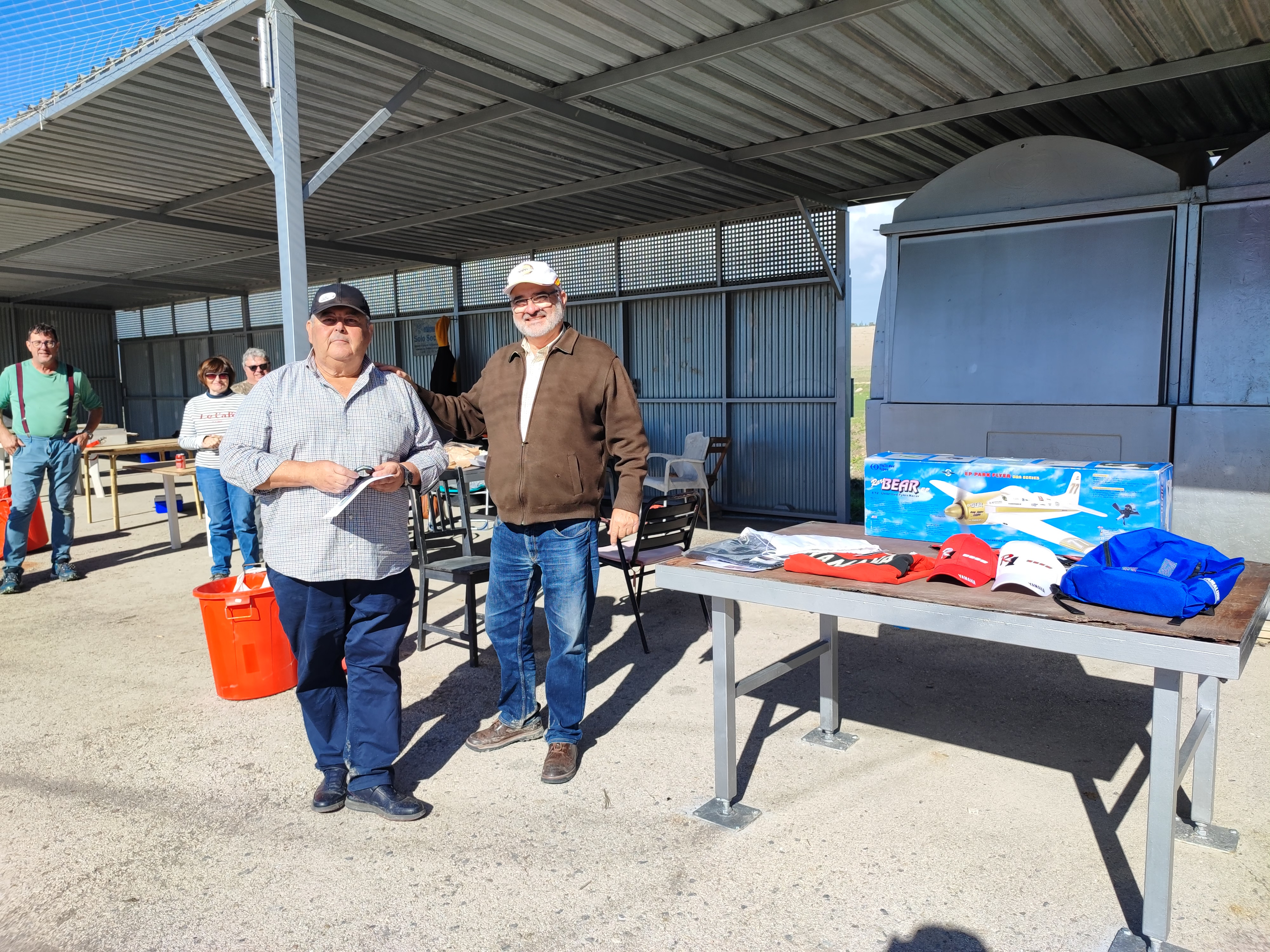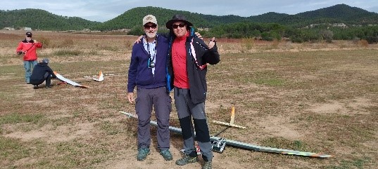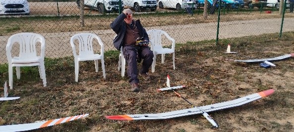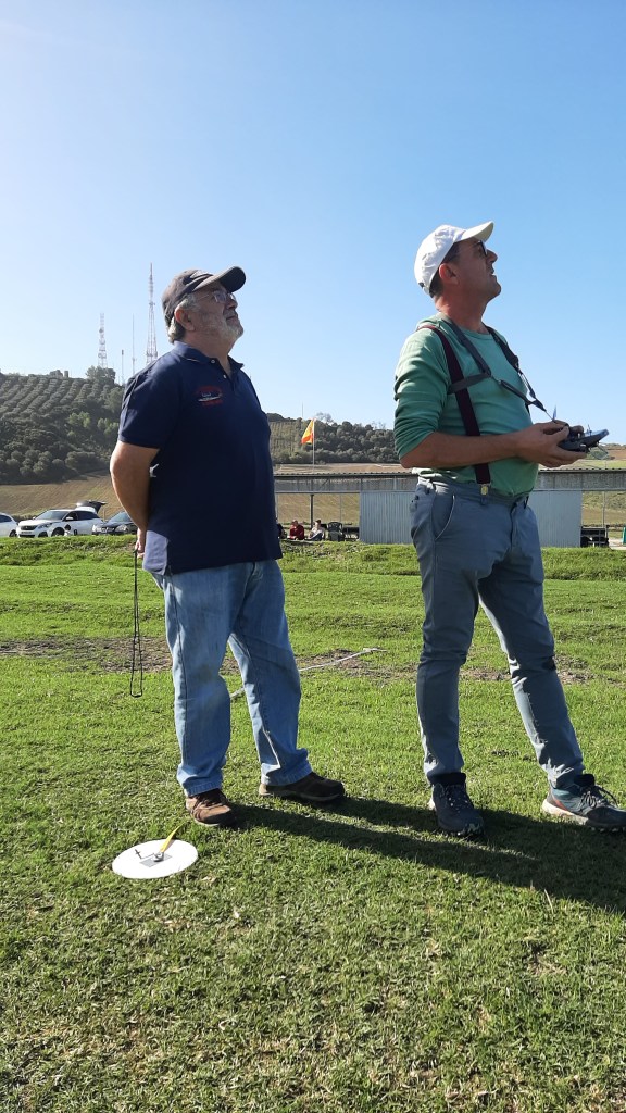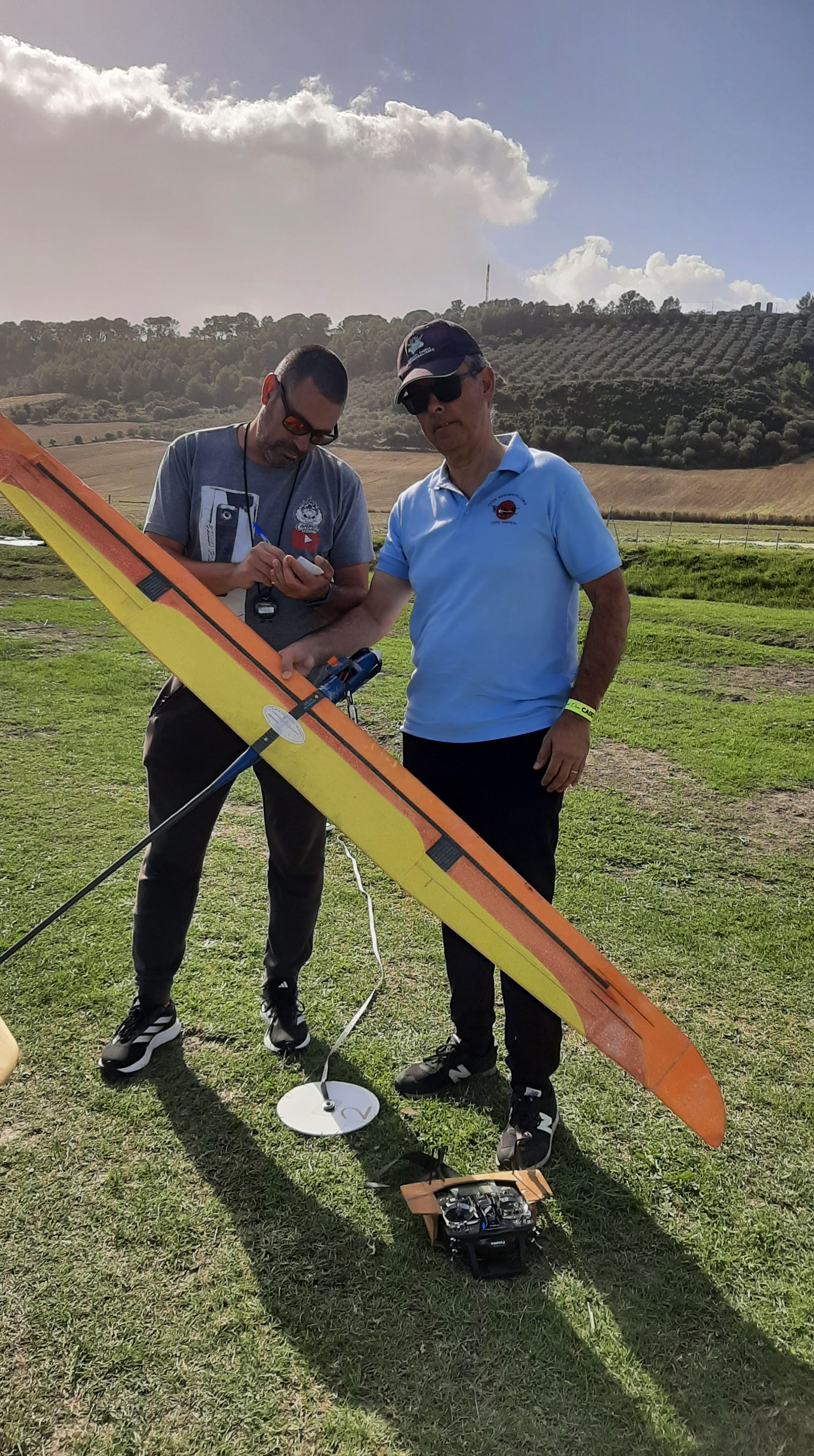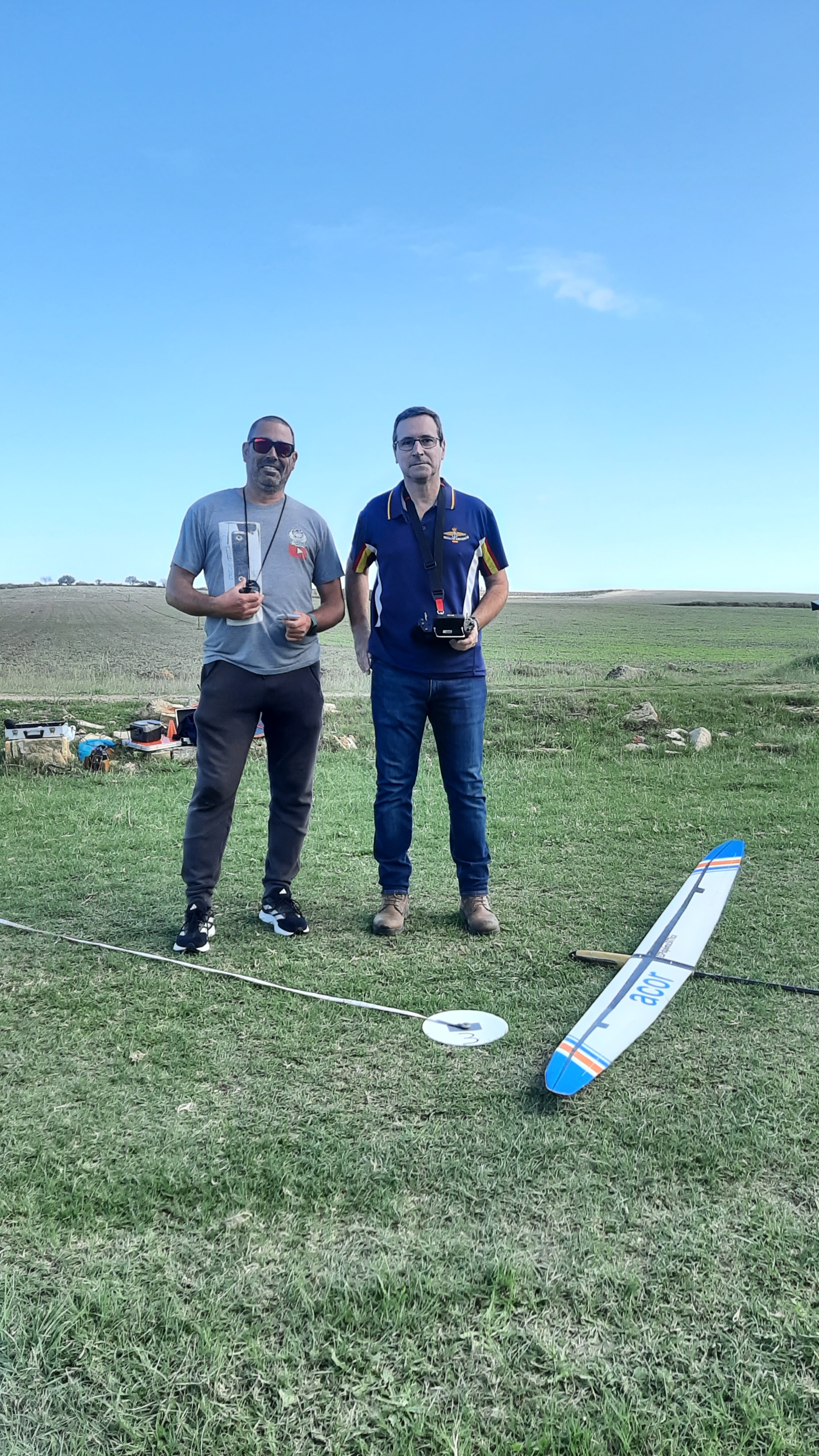 Reseñar que nuestro querido Paco Hernández no pudo ni hacer el primer vuelo, algo le pasaba a su regulador, que no arrancaba el motor, una pena. Agradecerle que se quedara con nosotros para ayudarnos en las tareas de cronometraje, muchas gracias.