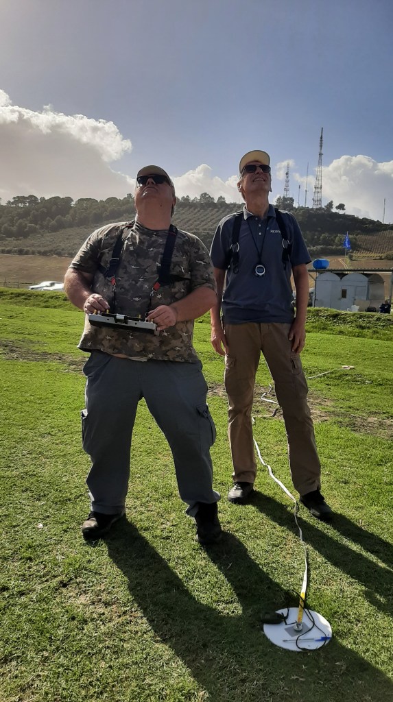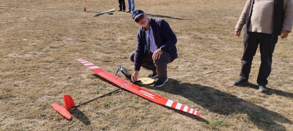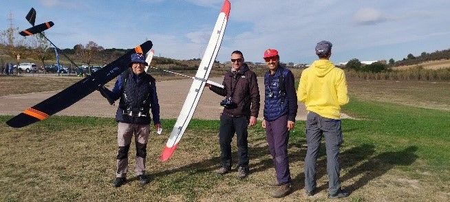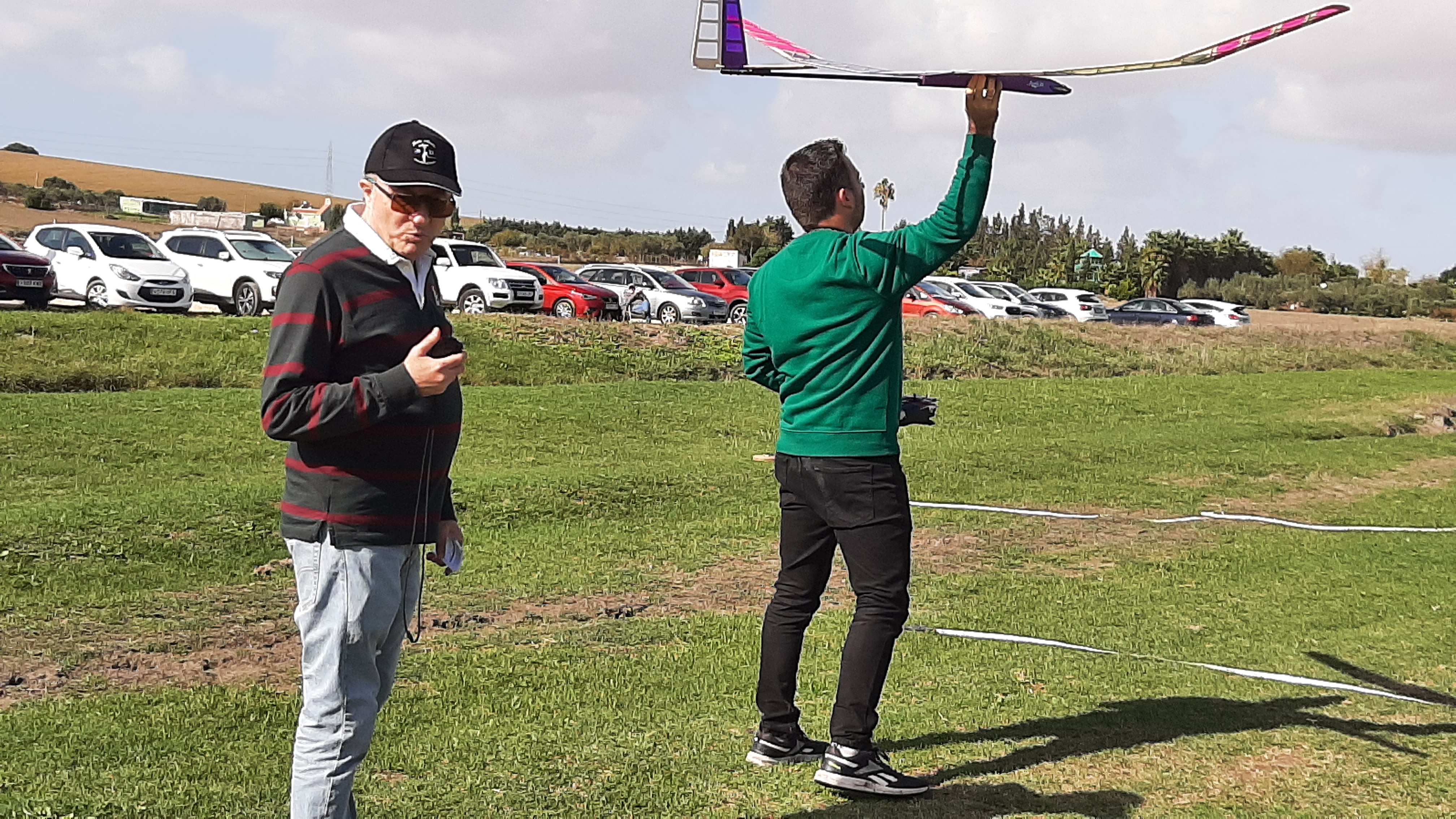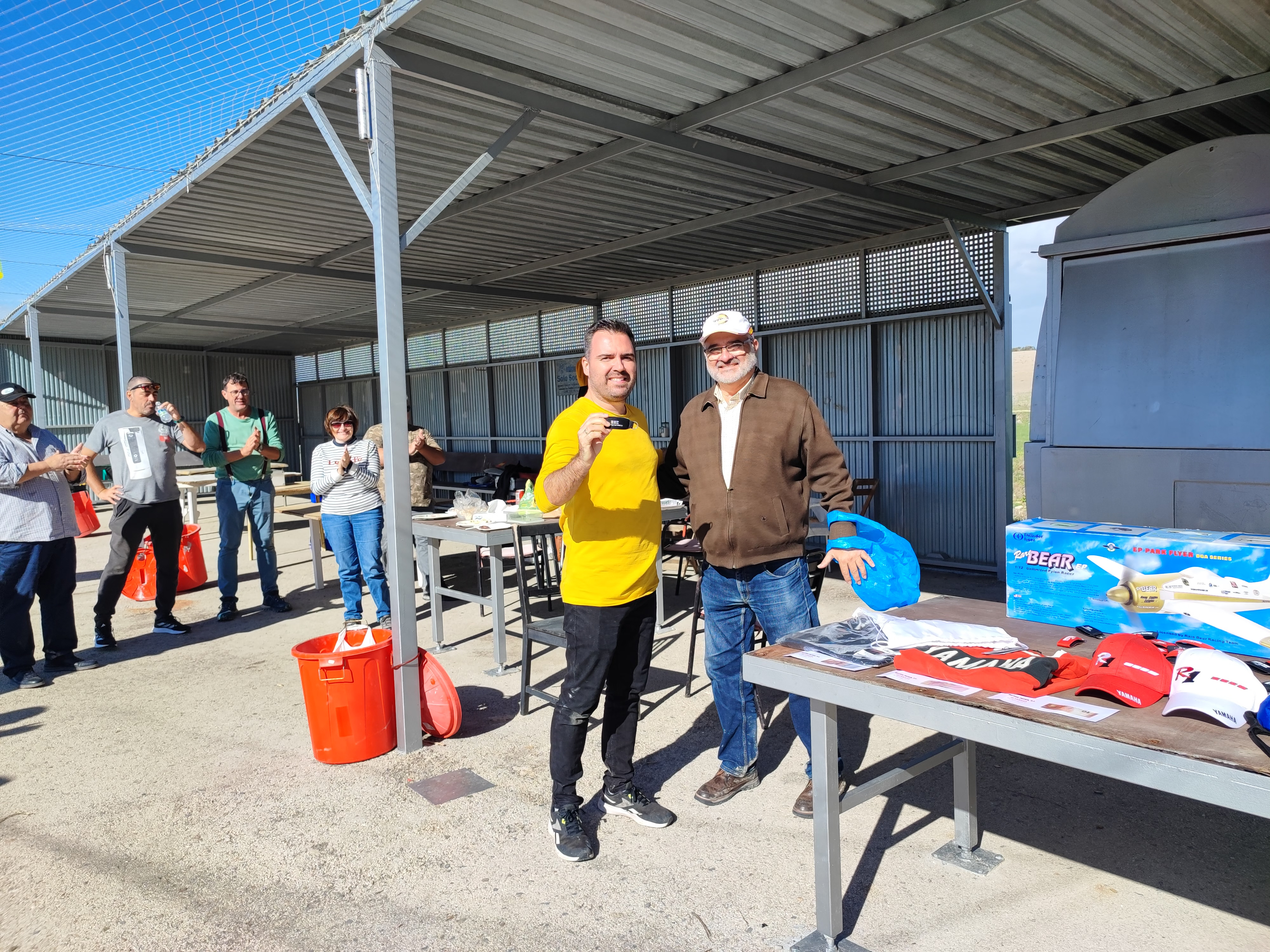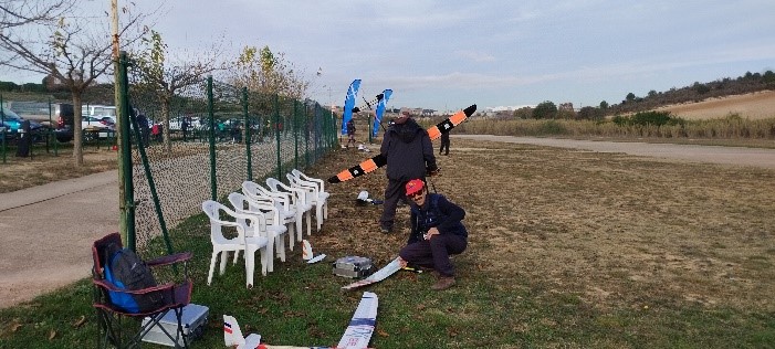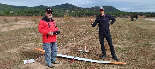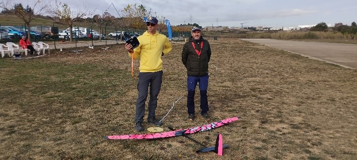 Reseñar que nuestro querido Paco Hernández no pudo ni hacer el primer vuelo, algo le pasaba a su regulador, que no arrancaba el motor, una pena. Agradecerle que se quedara con nosotros para ayudarnos en las tareas de cronometraje, muchas gracias.