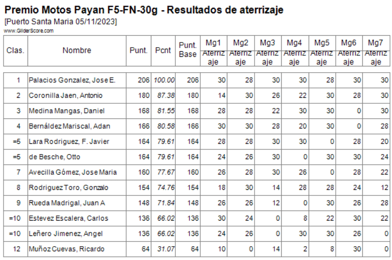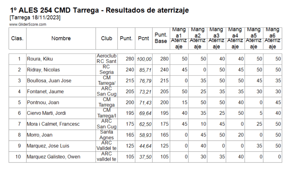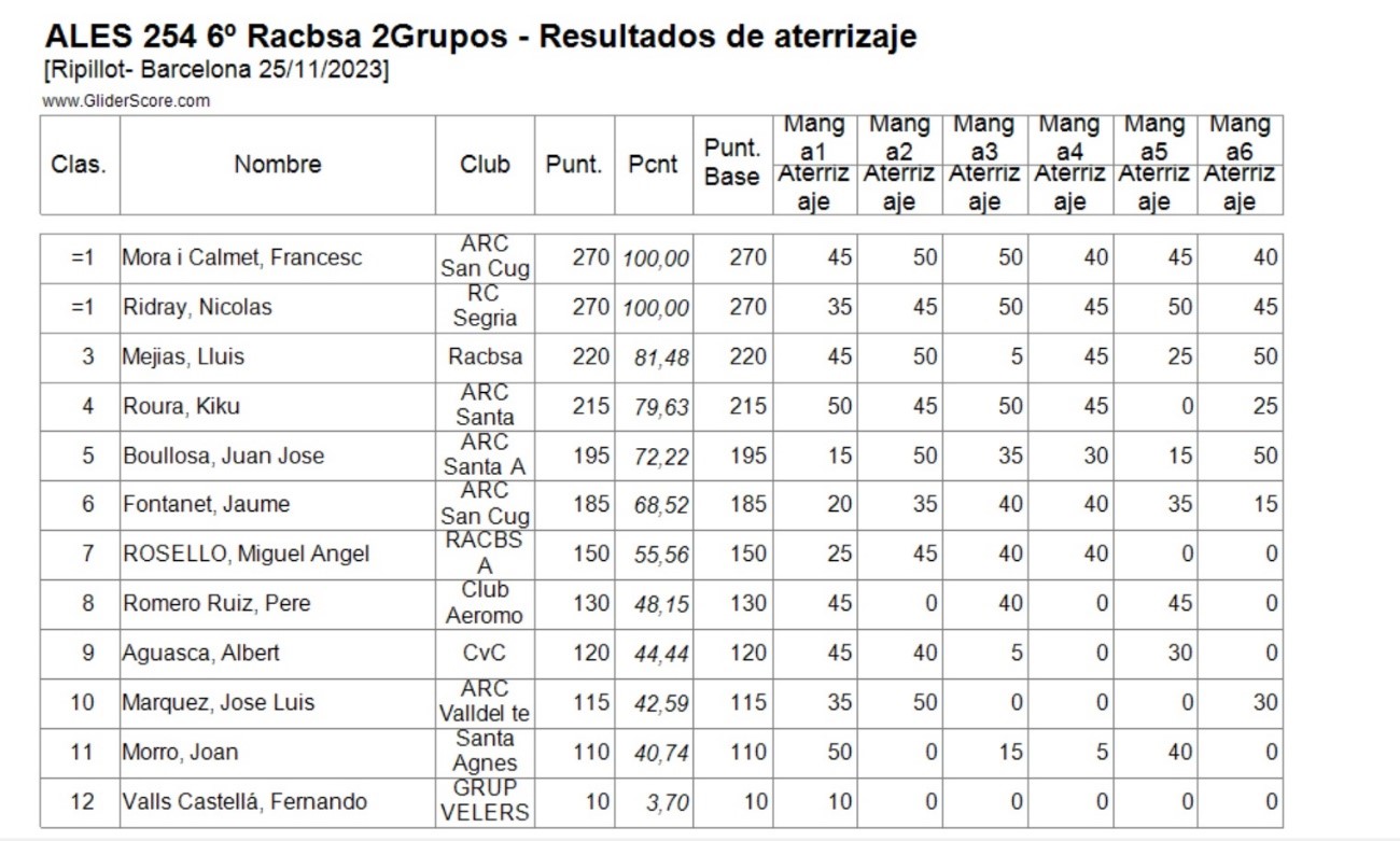 Y después de una bonita mañana de vuelos y charlas, así ha quedado la clasificación: