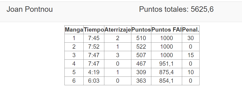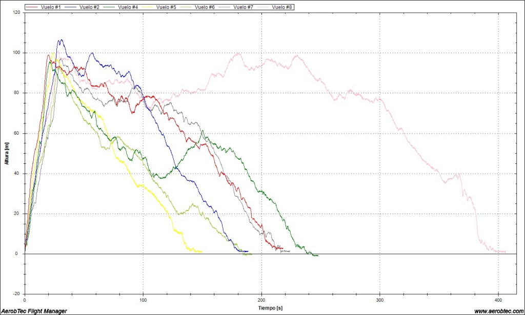 Nota: Hay mas de seis vuelos porque en la modalidad, dentro del tiempo de trabajo, se puede realizar mas un despegue, siendo considerado válido sólo el último.