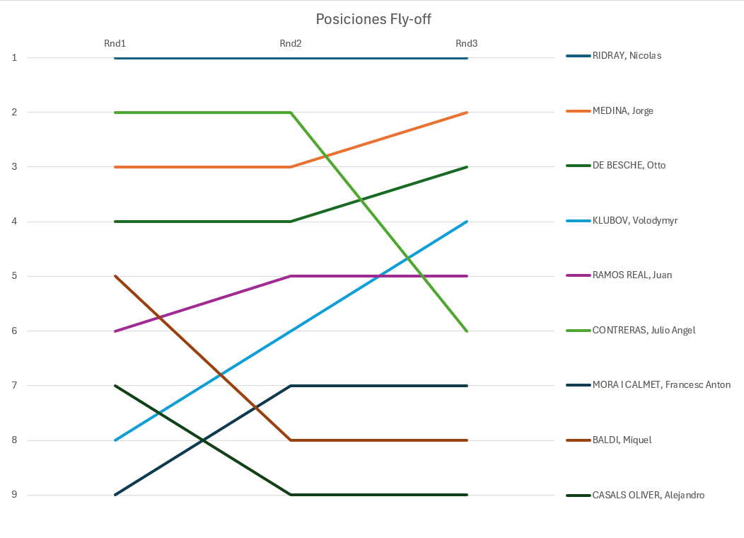 Y los nueve primeros clasificados una vez realizados los tres vuelos del Fly-off serian: