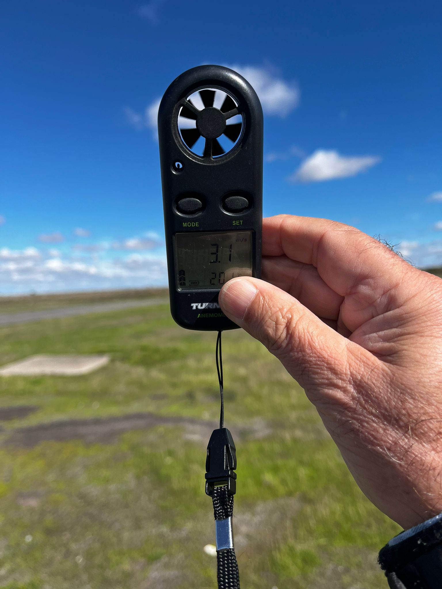 El anemómetro nos indica la velocidad ‘normal’ de hoy en el campeonato, las rachas superarian con creces esa velocidad, incluso pasando del doble … en la foto de la derecha se ve su efecto en la ‘coleman’.