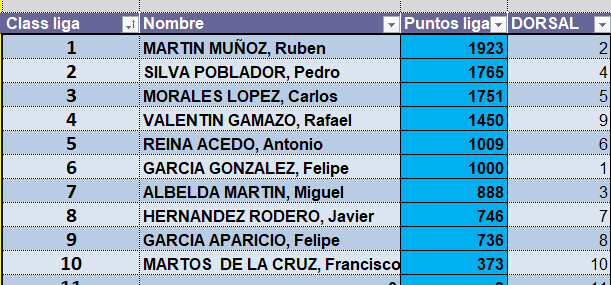 Enhorabuena a los ganadores de la prueba y al podio actual de la Liga.