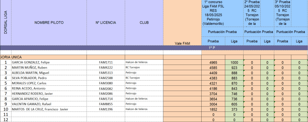 Celebramos con gran entusiasmo esta primera competicion de la primera liga de F5L en la FAM.