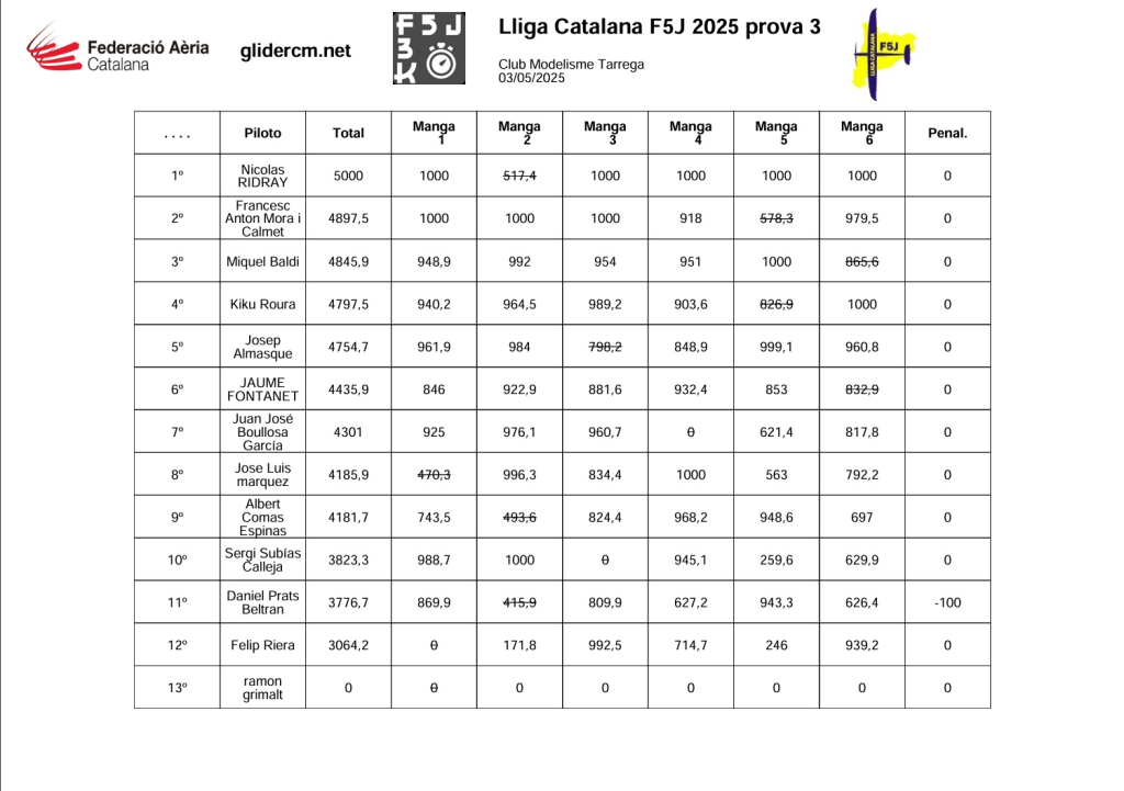 3ª Prueba de la Liga de Cataluña F5J 2025 CM Tarrega por JJBoullosa