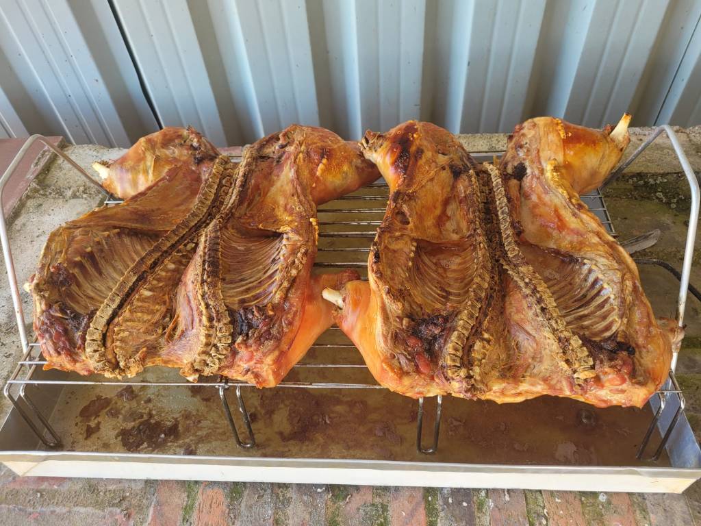 Esta vez vamos a empezar por lo importante 😉 … Unos cuantos amigos se reunen para comerse un par de cochinillos al horno