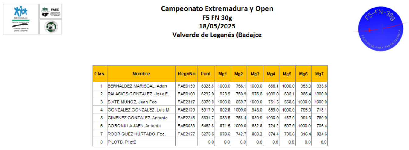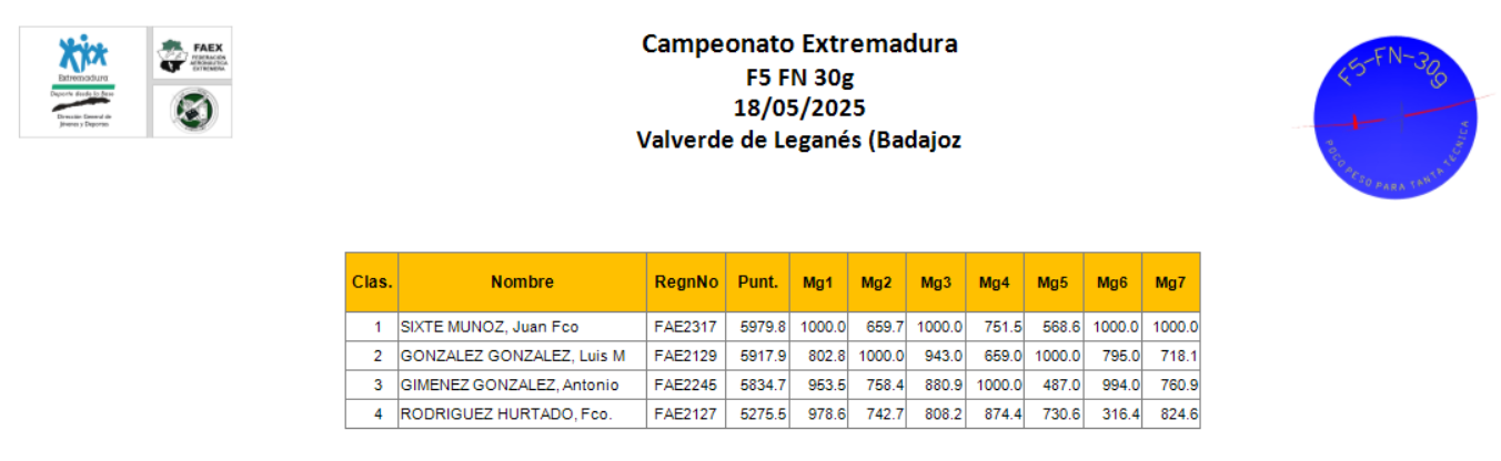 Pero antes había que hacer deporte y decidieron hacerlo con un Campeonato de F5-FN-30g (fórmula nacional de F5) y, como nó, como Campeonato de Extremadura y Open nacional.