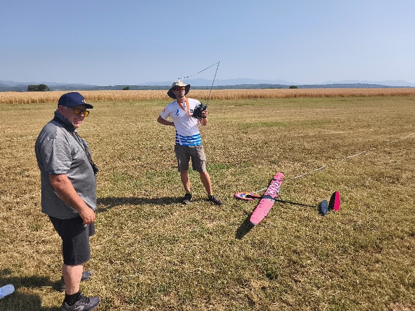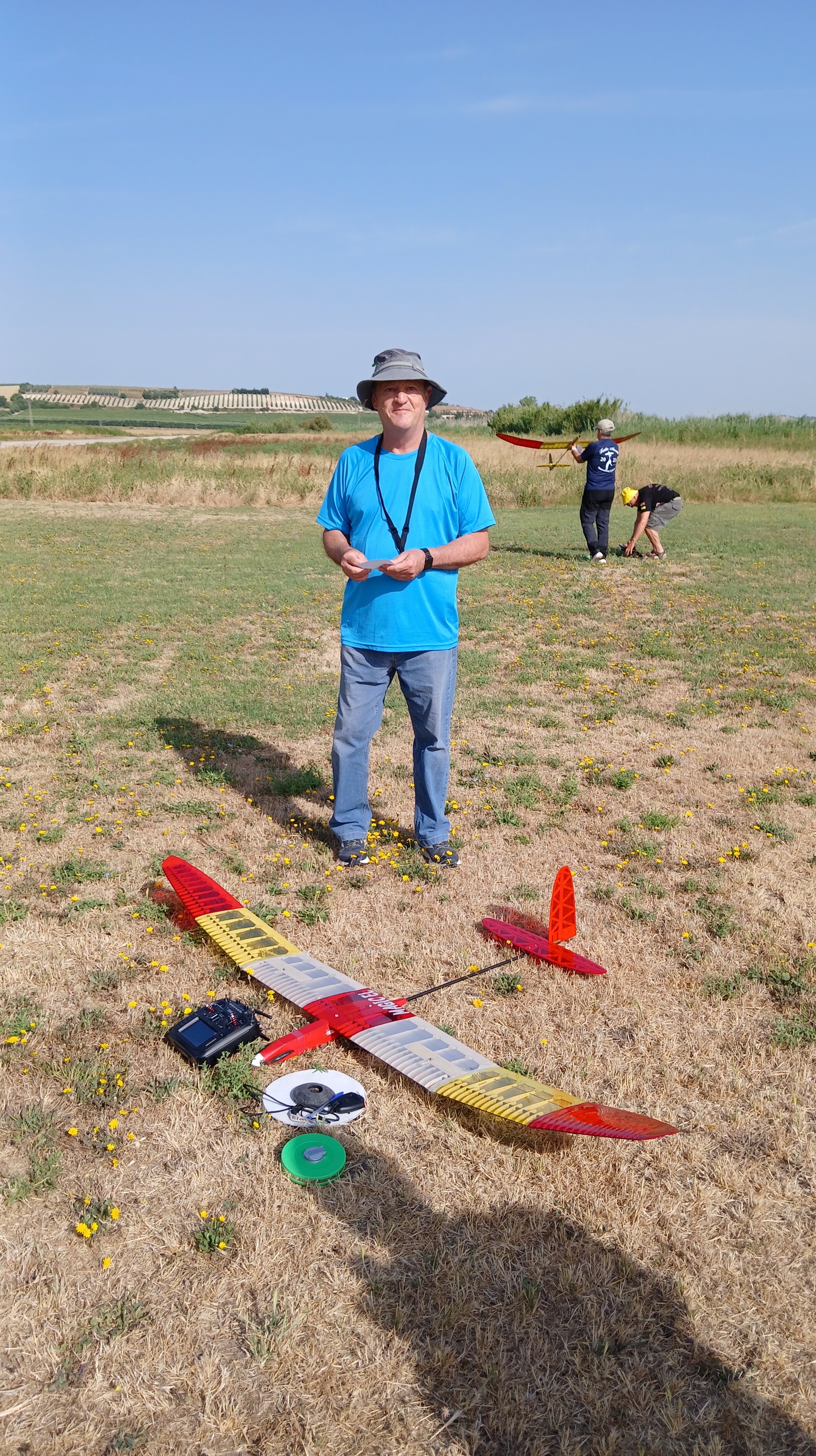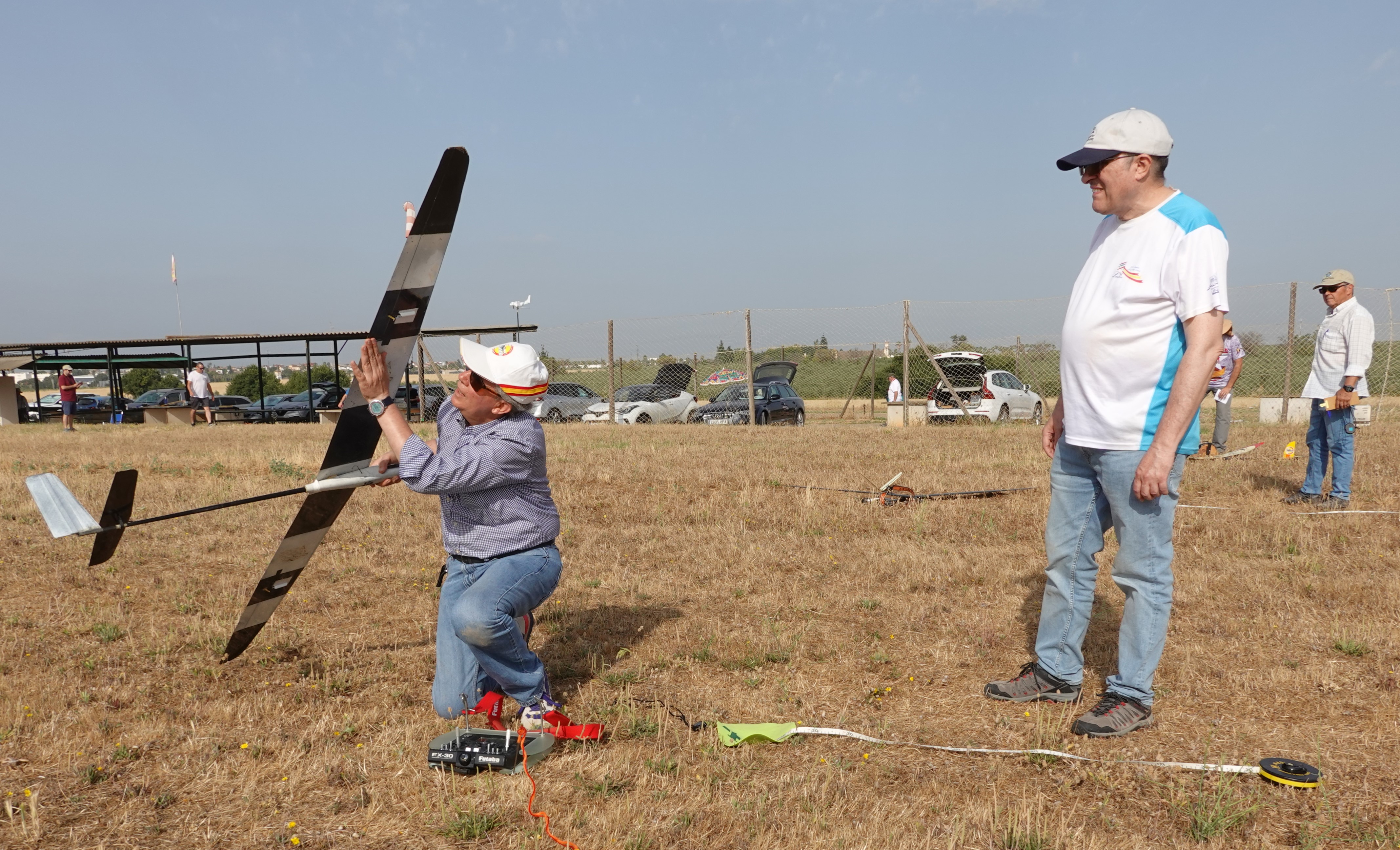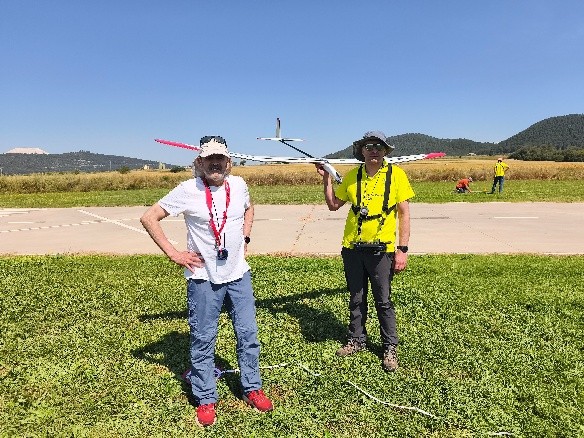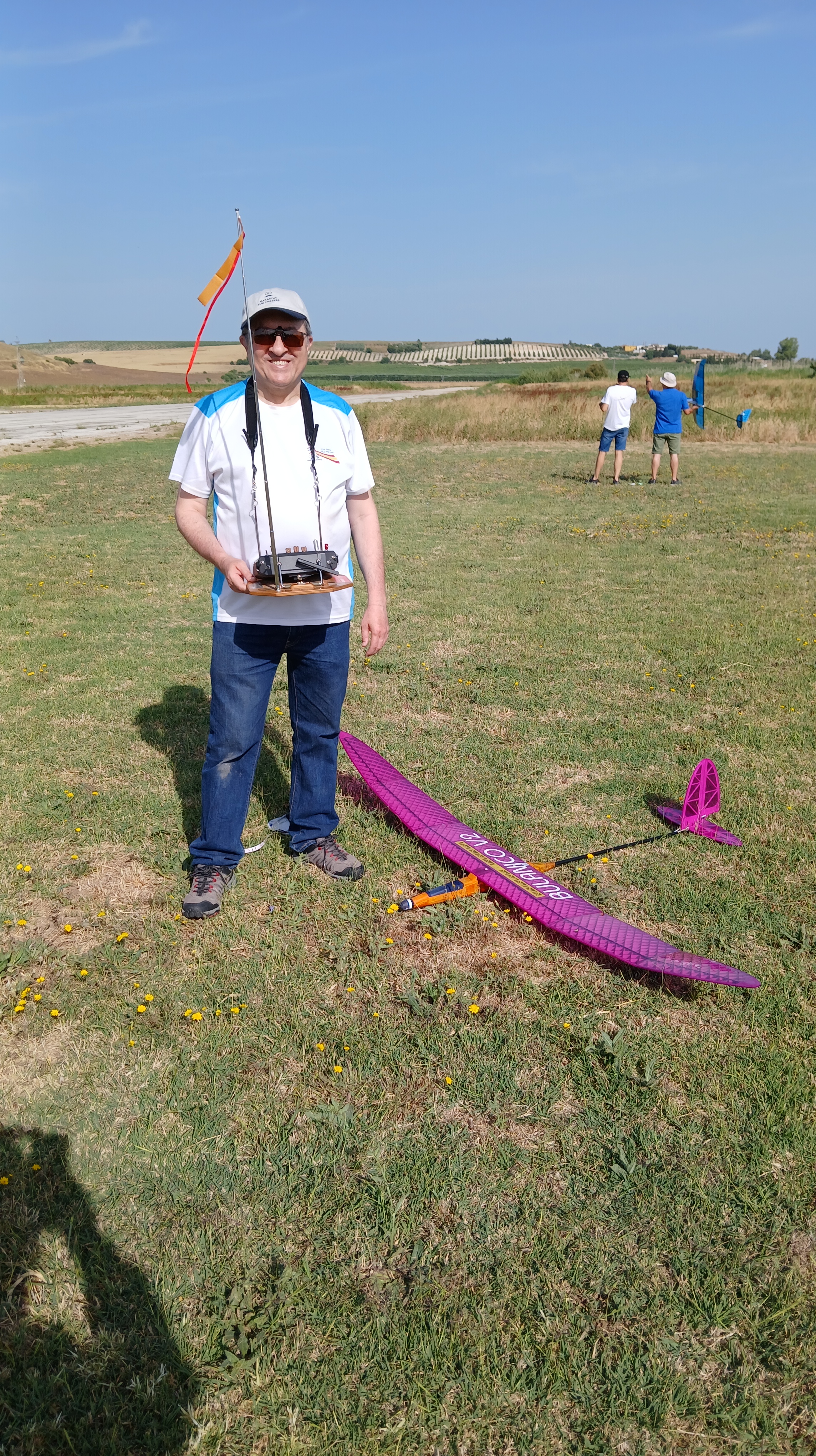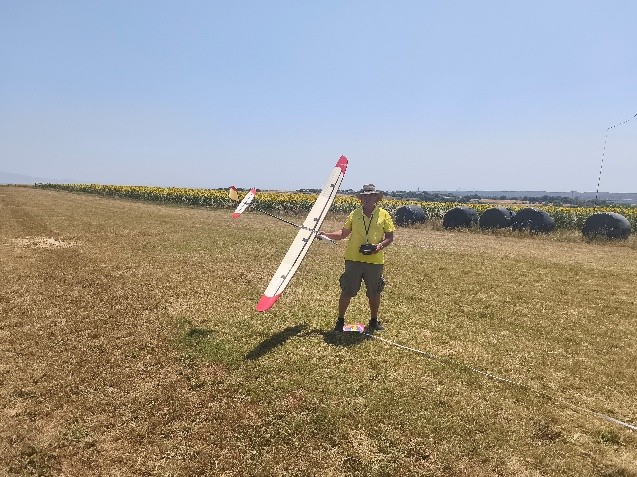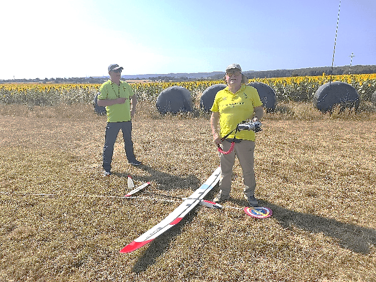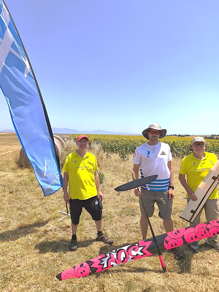 Destacar que en esta disciplina se puede volar con modelos de menos de 2,5m y de más de 2,5m, lógicamente con bonificación a los pequeños. Por eso merecen nuestro elogio, Rubén Martín y Rafael Valentín Gamazo, ambos con modelos de «palitos» construidos artesanalmente por ellos mismos.