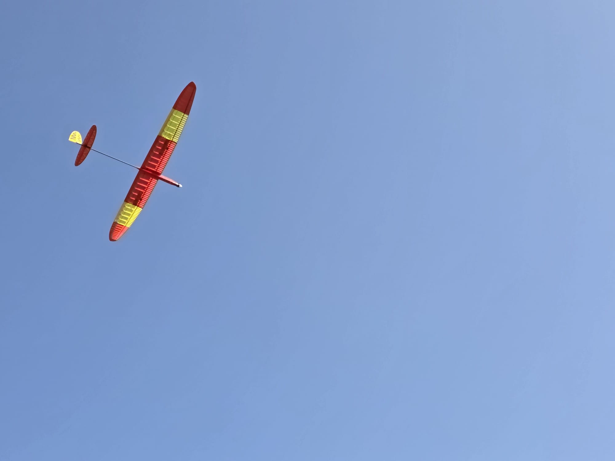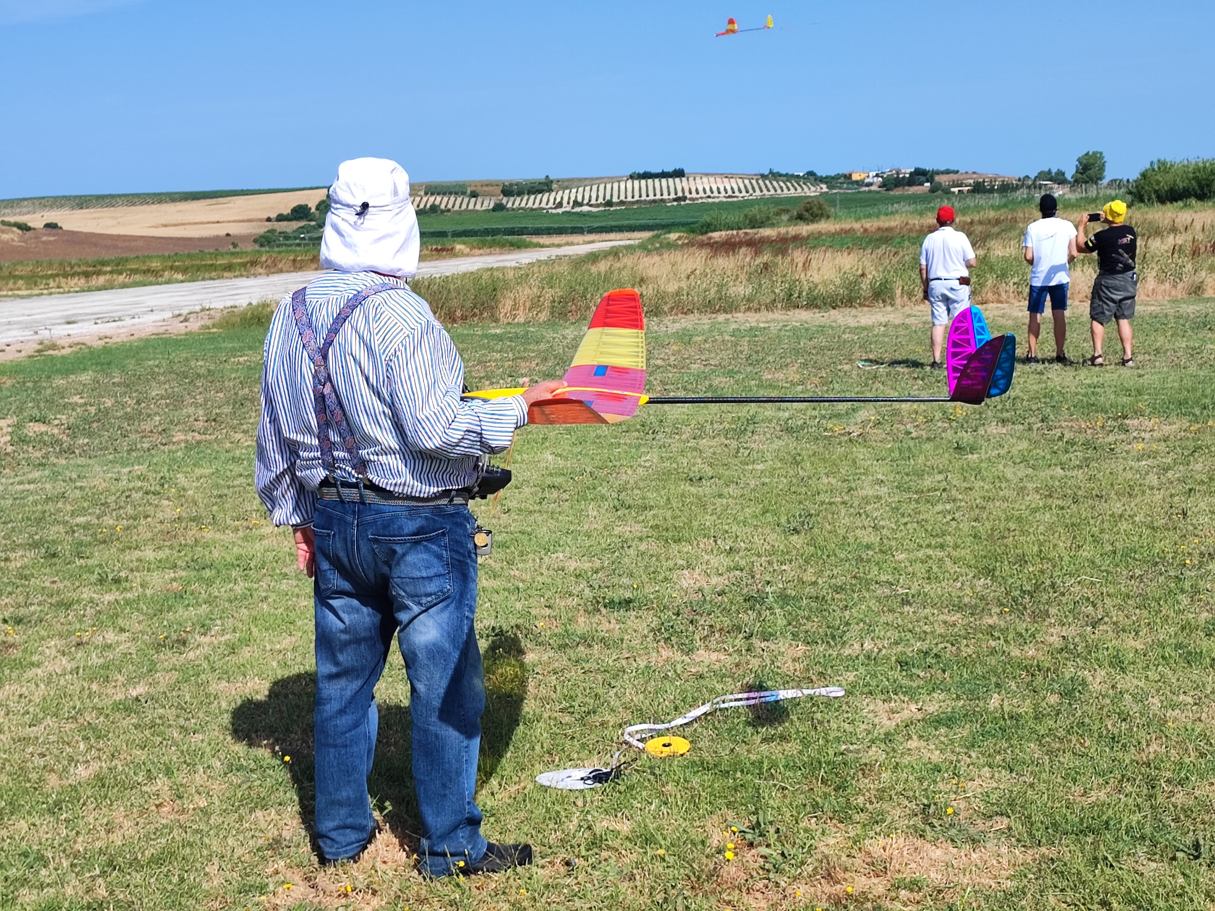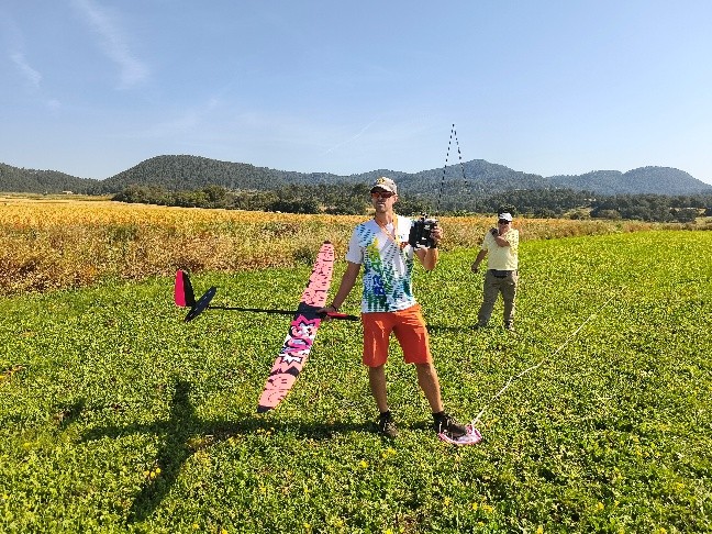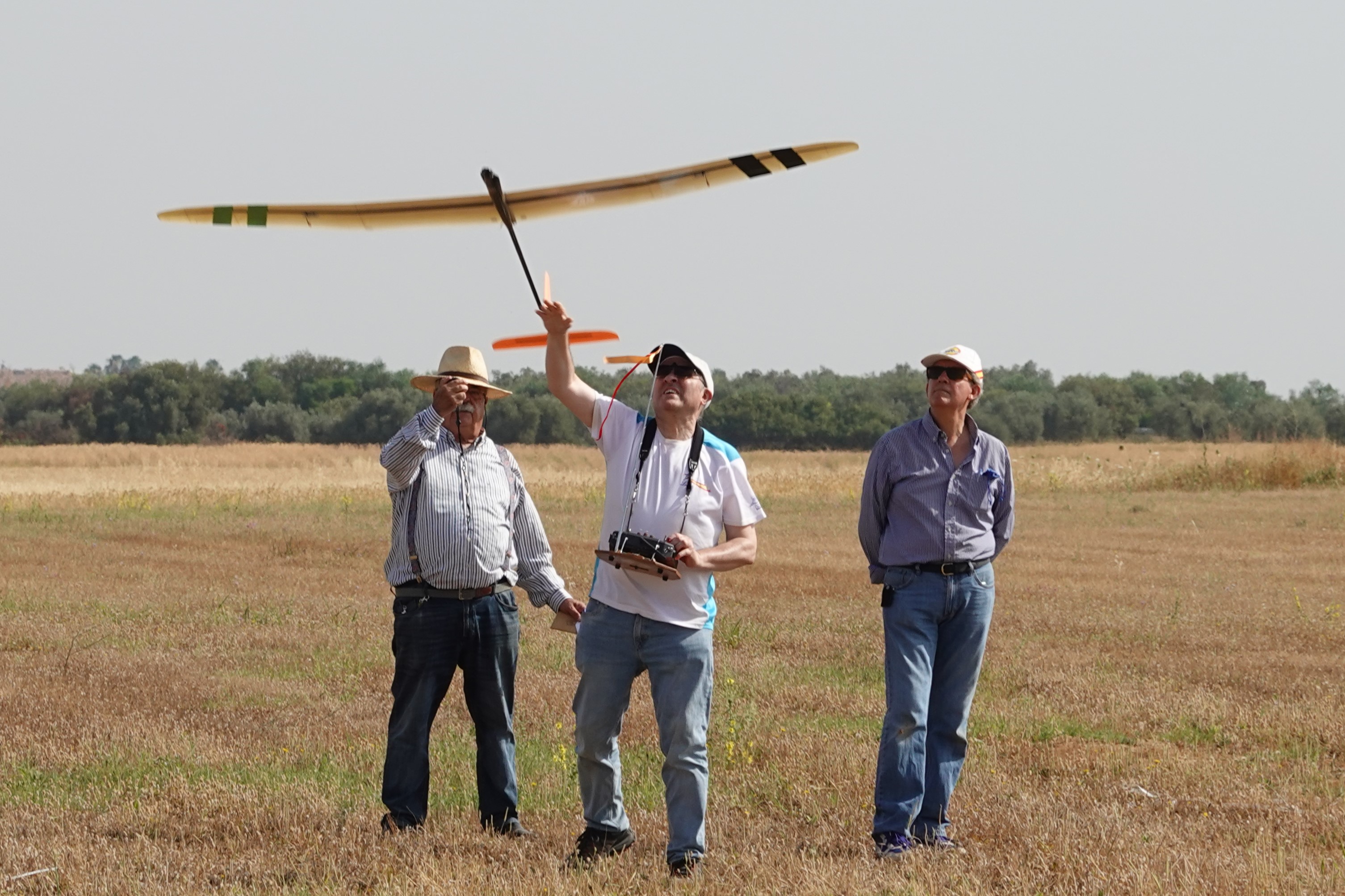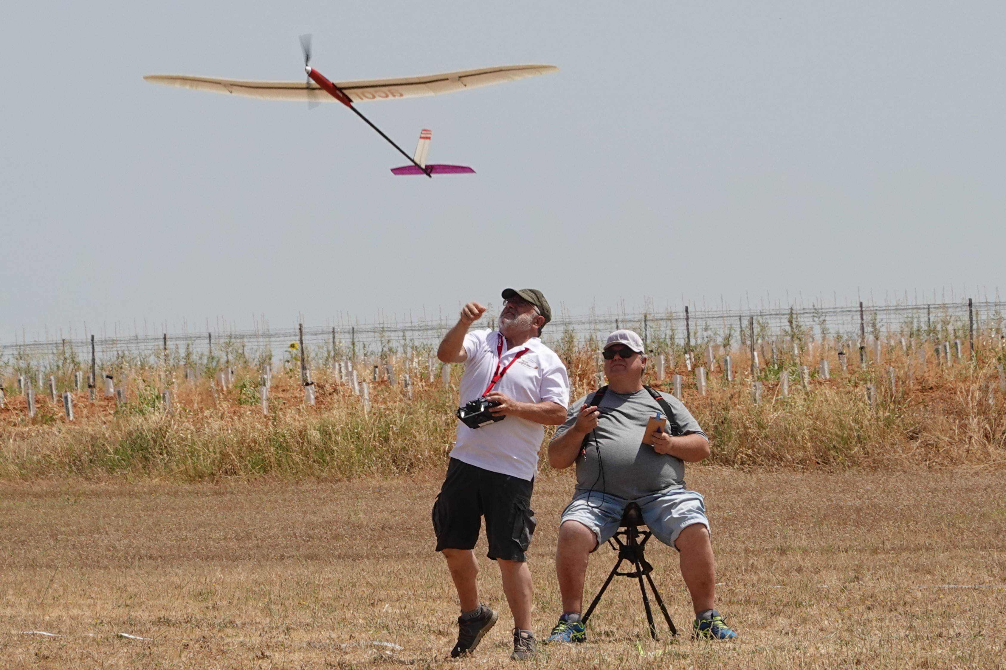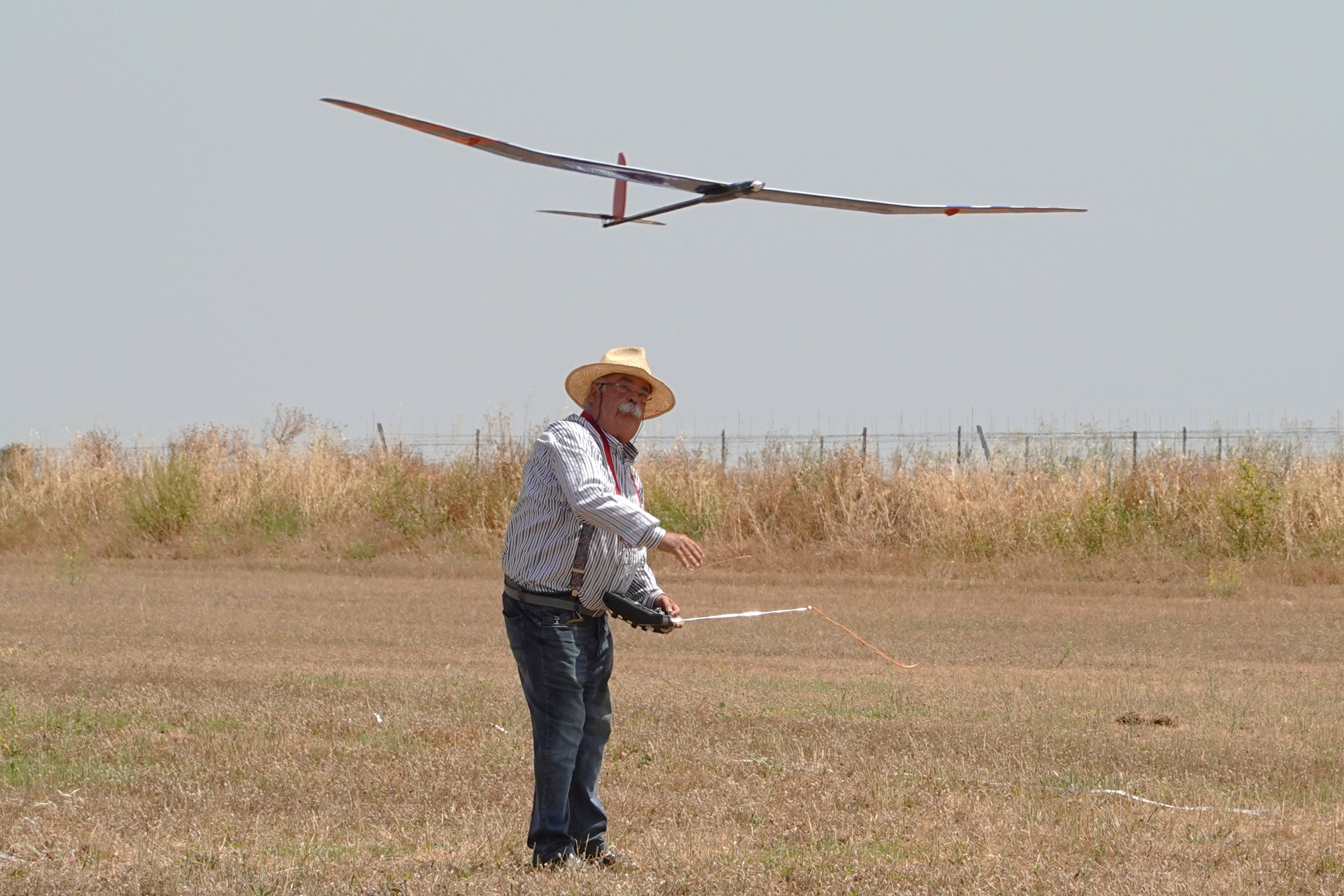 Destacar que en esta disciplina se puede volar con modelos de menos de 2,5m y de más de 2,5m, lógicamente con bonificación a los pequeños. Por eso merecen nuestro elogio, Rubén Martín y Rafael Valentín Gamazo, ambos con modelos de «palitos» construidos artesanalmente por ellos mismos.
