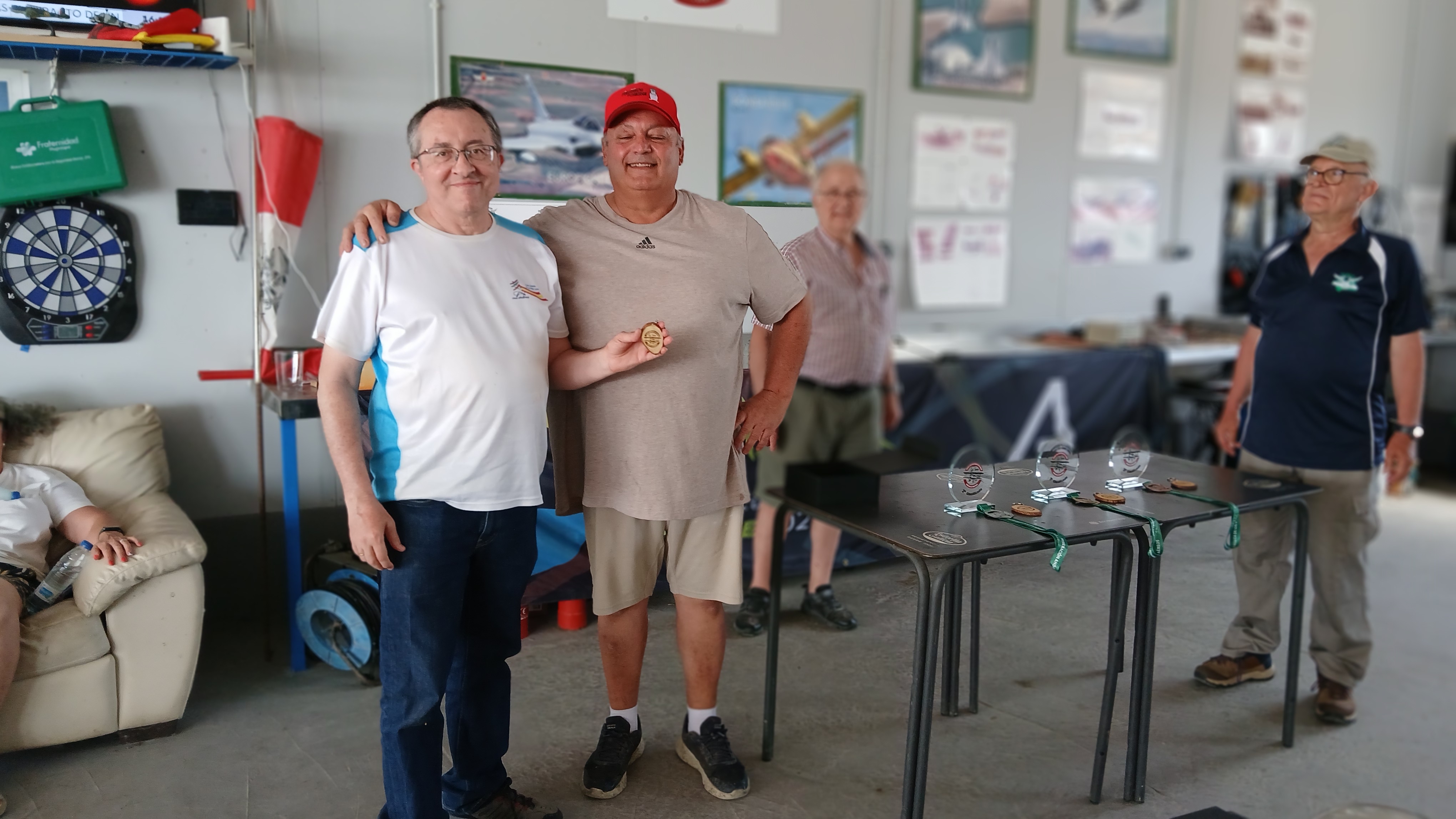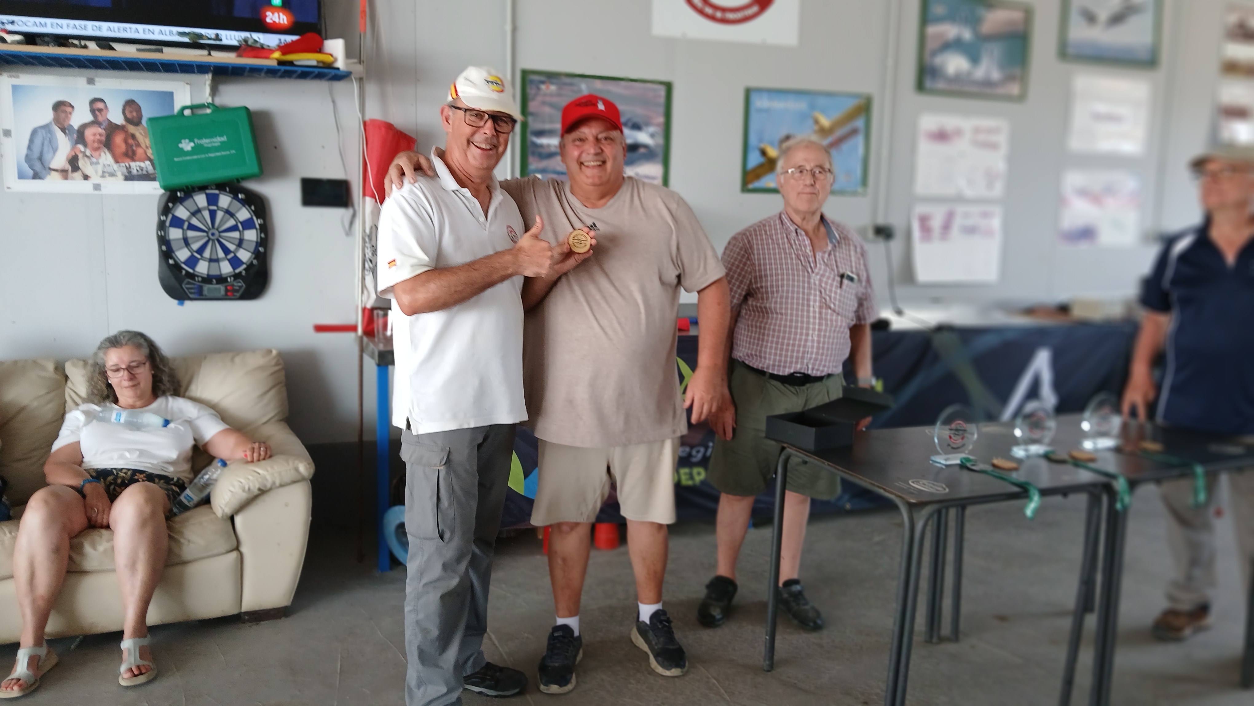 Si de algo no disfrutamos en esas horitas de vuelos fué de la temperatura, menos mal que la perfecta organización y las magníficas instalaciones del Club de Aeromodelismo La Ina permitieron que no faltara agua/refrescos y en caso de necesidad disponiamos de una sala acondicionada (si, con AireAcondicionado) y su correspondiente sofá para recuperarse de un ‘yuyu’. A D.g., sólo una persona se sintió indispuesta, curiosamente después de haber terminado el concurso e incluso la comida.