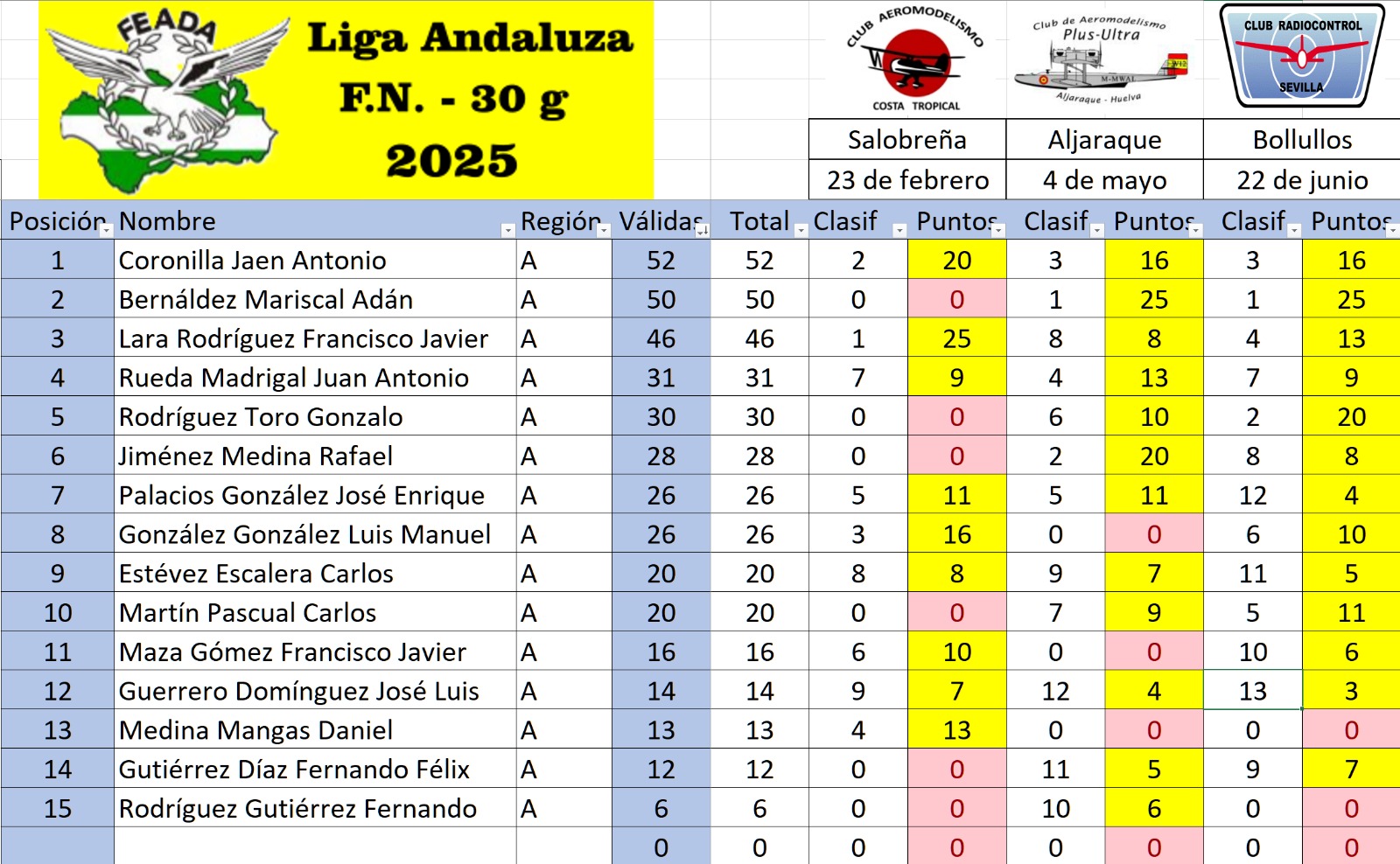 Y la clasificación Final de la Liga Andaluza F5-FN-30g quedaría