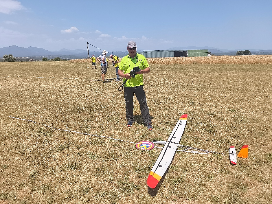 Destacar que en esta disciplina se puede volar con modelos de menos de 2,5m y de más de 2,5m, lógicamente con bonificación a los pequeños. Por eso merecen nuestro elogio, Rubén Martín y Rafael Valentín Gamazo, ambos con modelos de «palitos» construidos artesanalmente por ellos mismos.
