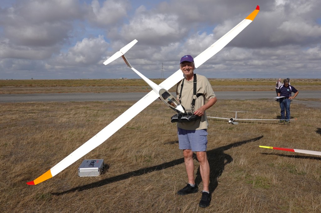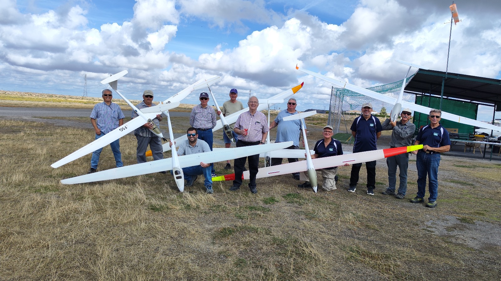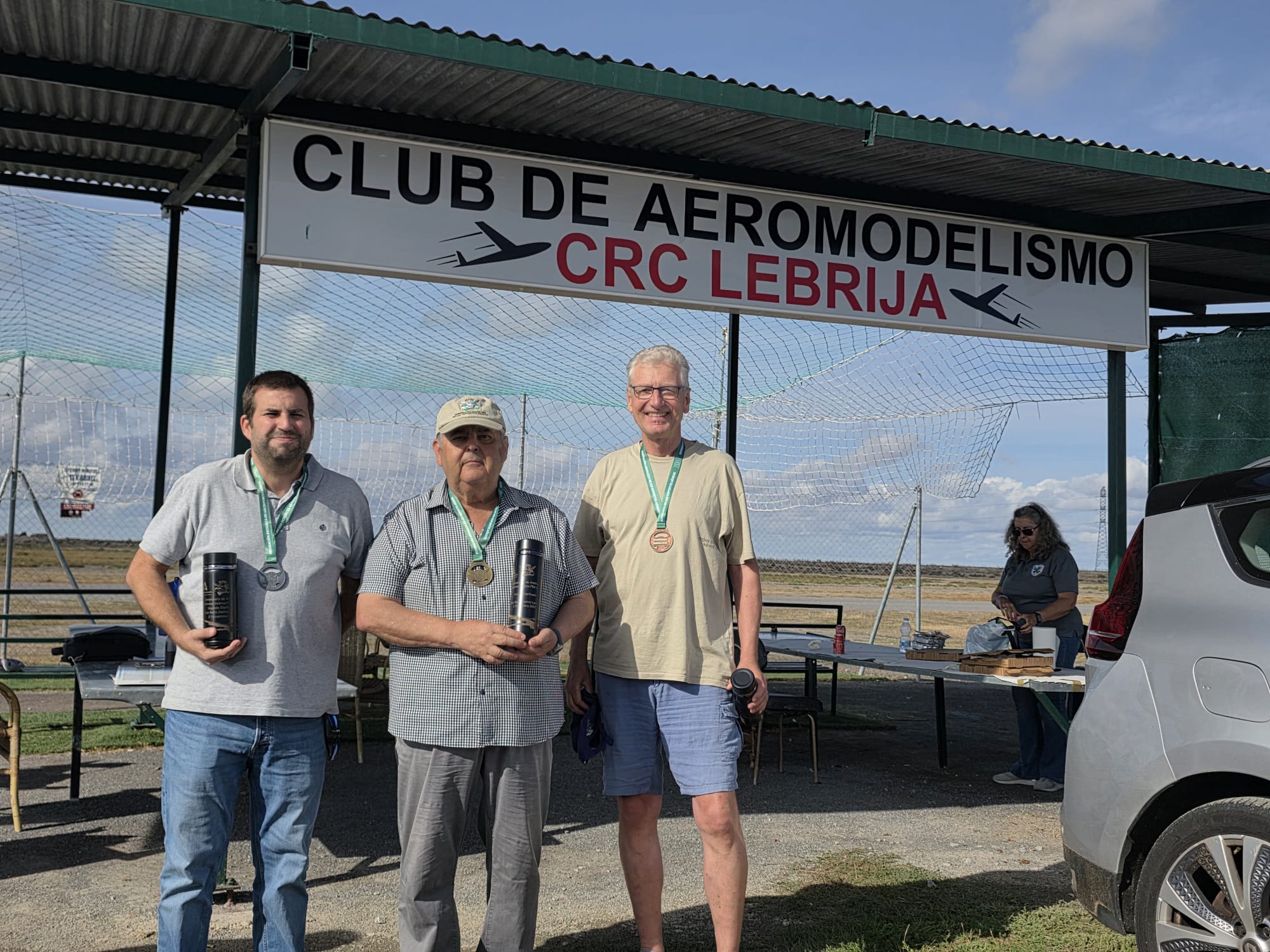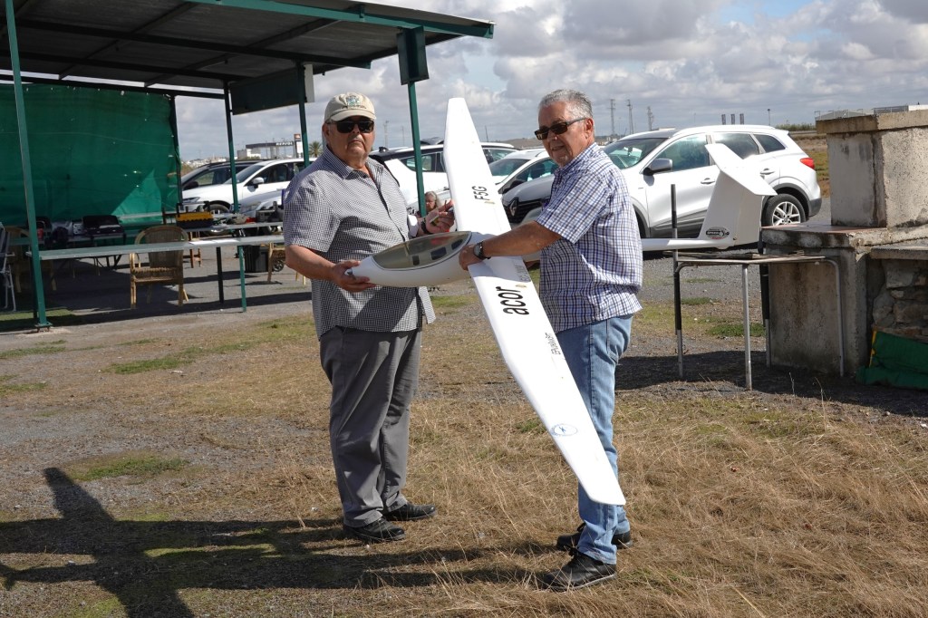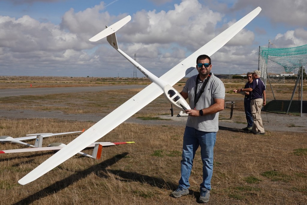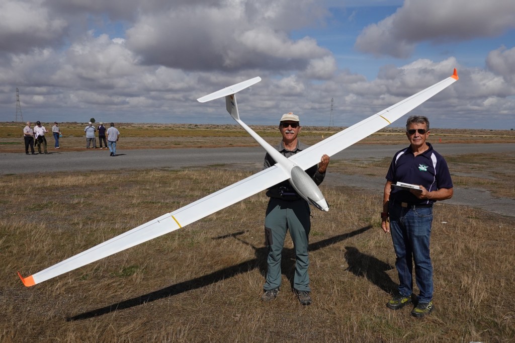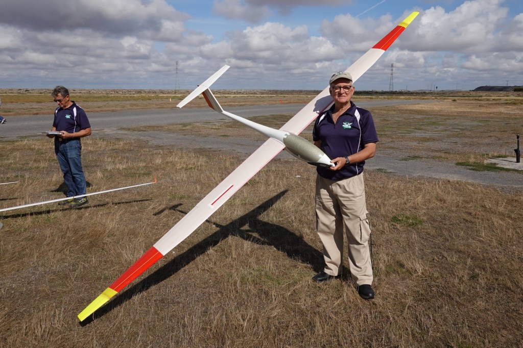 José Enrique Palacios del Club Rc Lebrija y voluntarios de otros clubes (Agustín, Manolo Barba, José María Berenguer hicieron de ayudantes/Cronometradores, José Luis Guerrero de «juez de lata» y Antonio Pinto ayudando a todos) consiguieron un gran dia de vuelos para estos grandes veleros. Contó con la colaboración extraordinaria de la ‘meteo’ y se hicieron estupendos vuelos. Por diversas razones faltaron pilotos asiduos a la especialidad y de nuevo contó la prueba con la asitencia de Juan Ramos del Grupo Halcón de Veleros (Madrid). Los artistas (pilotos y ayudantes):