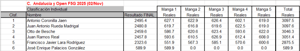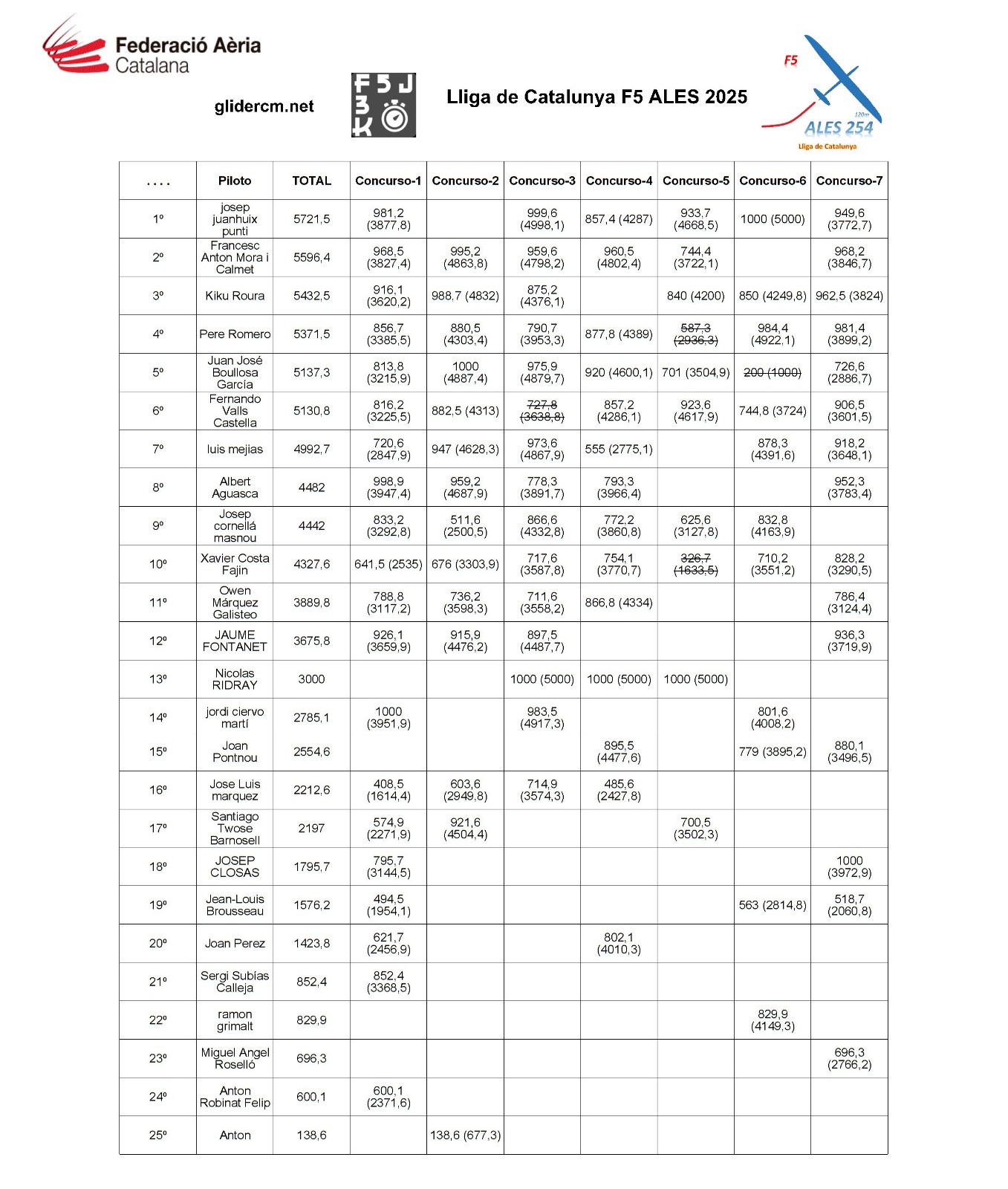 Y la clasificación de la Liga FAM F5J OPEN K4/K6 2025 quedó así: