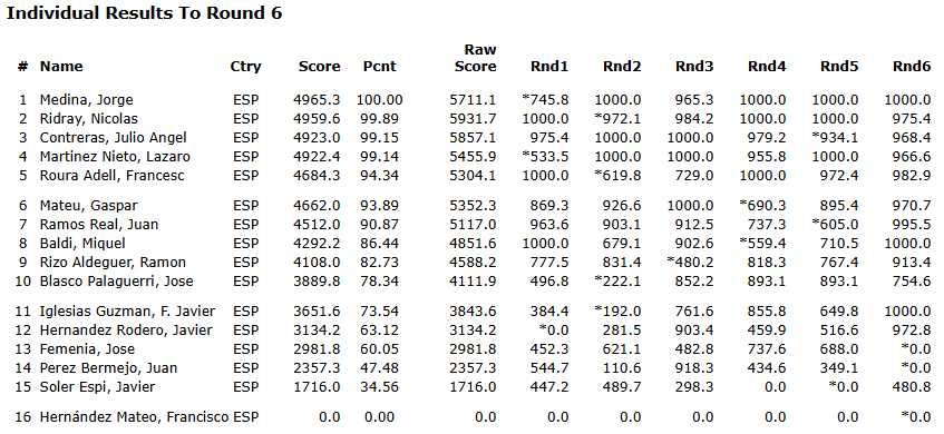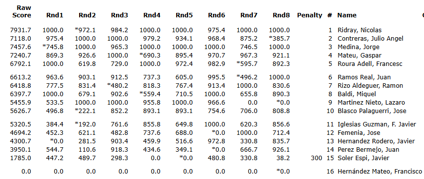 Los resultados después de los ocho vuelos de calificación quedaron así (obtenidos con GliderScore):